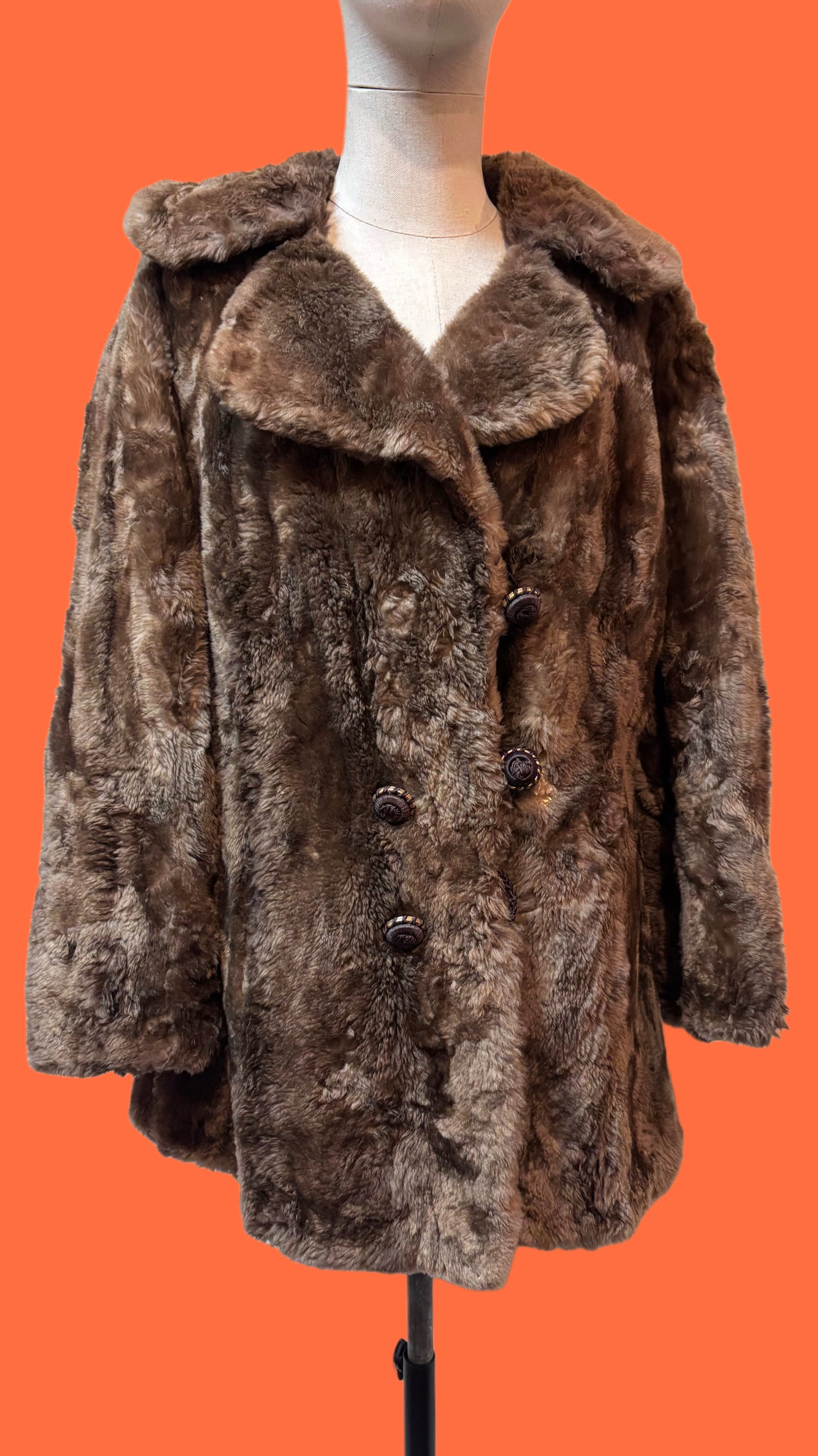 ·CARACTERISTICAS: precioso abrigo de peletería, original de la época. Está en excelente estado y con muy poco uso, porque el forro está impoluto. Abriga muchísimo y es un clásico que va con todo. Color beige oscuro.