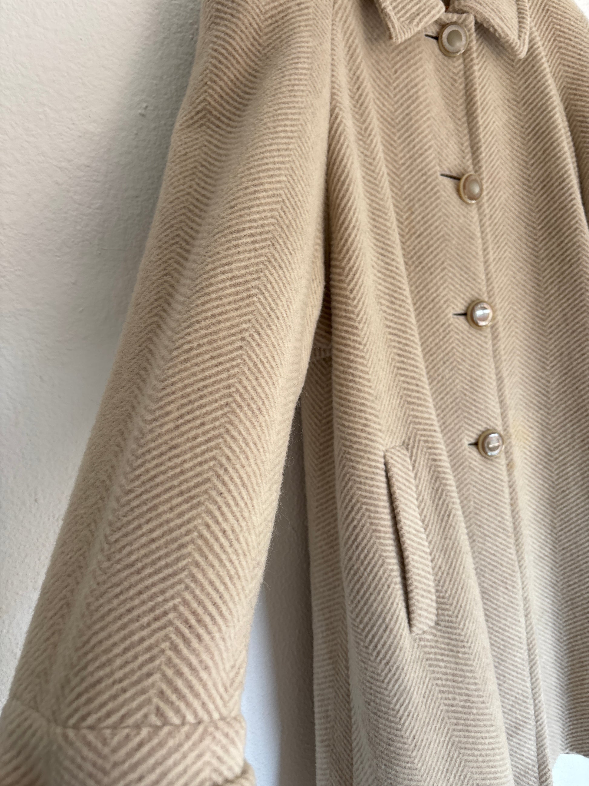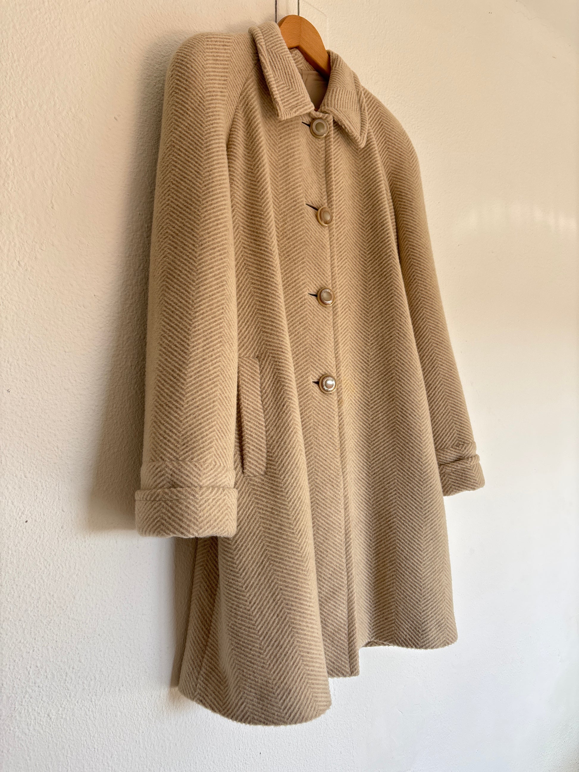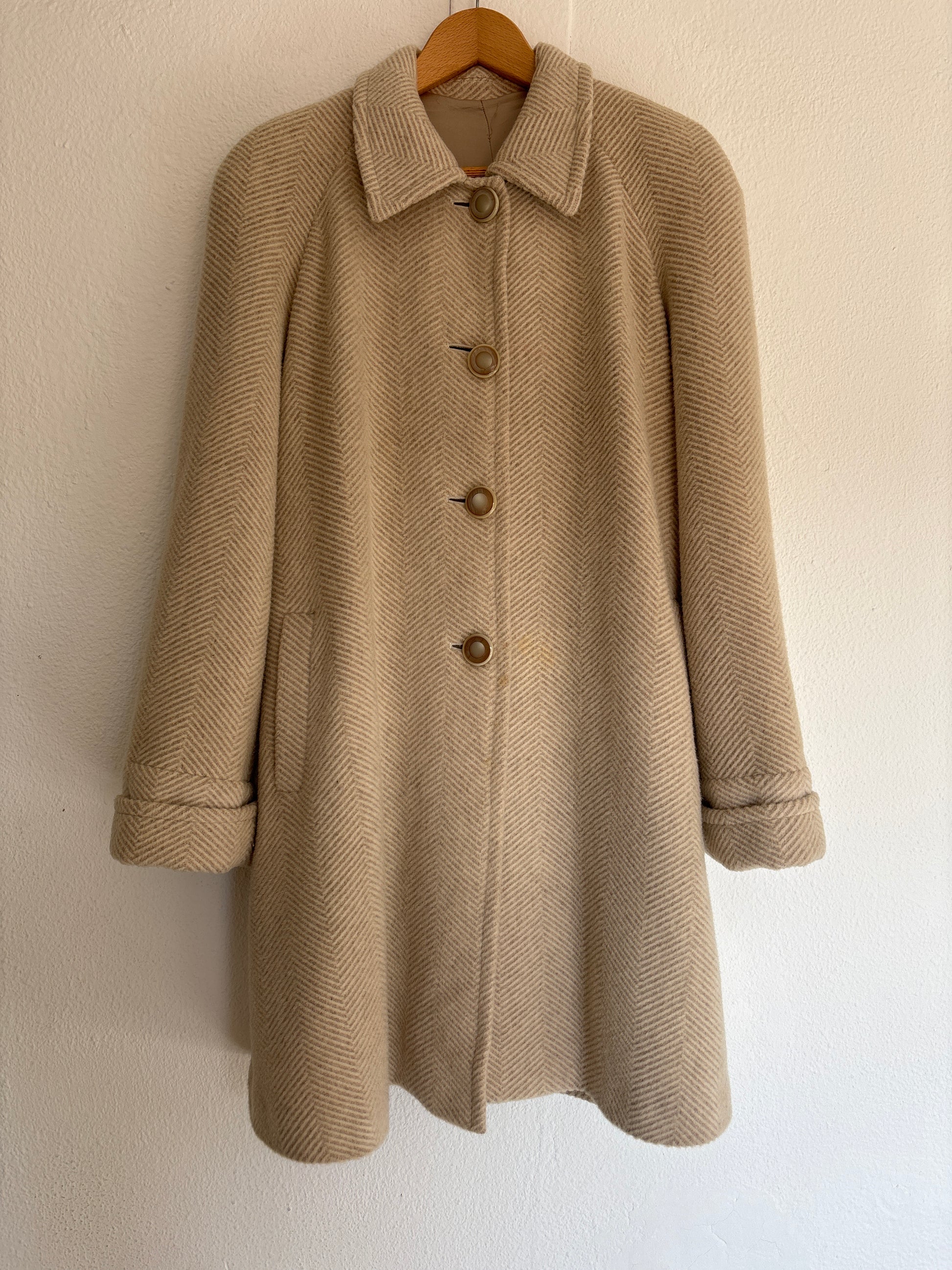 ·CARACTERISTICAS: Corte evasé, jaspeado, con botones originales y mangas anchas. Es un color arena clásico (más claro que en la foto) súper bonito. Está forrado. Es una preciosidad de abrigo de mucha calidad que va con absolutamente todo.