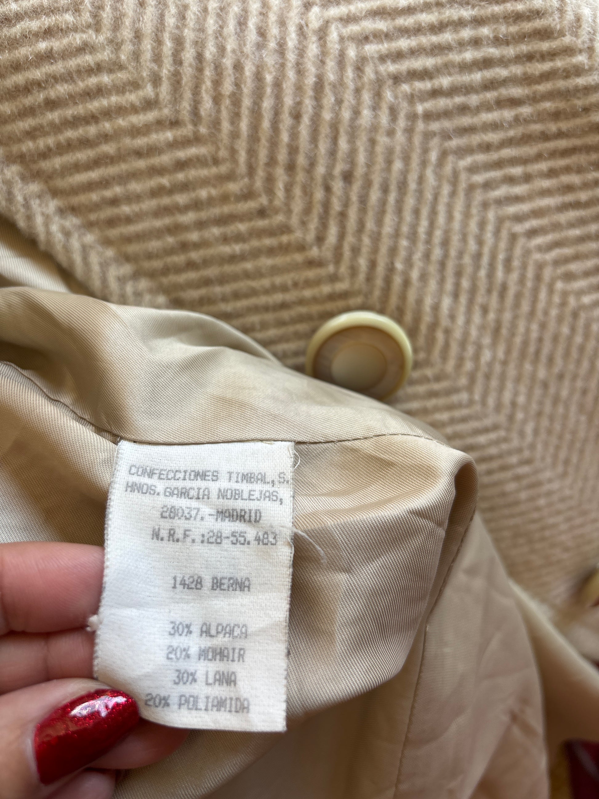 ·TEJIDO: 30% alpaca, 20% mohair, 30% lana, 20% poliamida. El forro es viscosa 100%