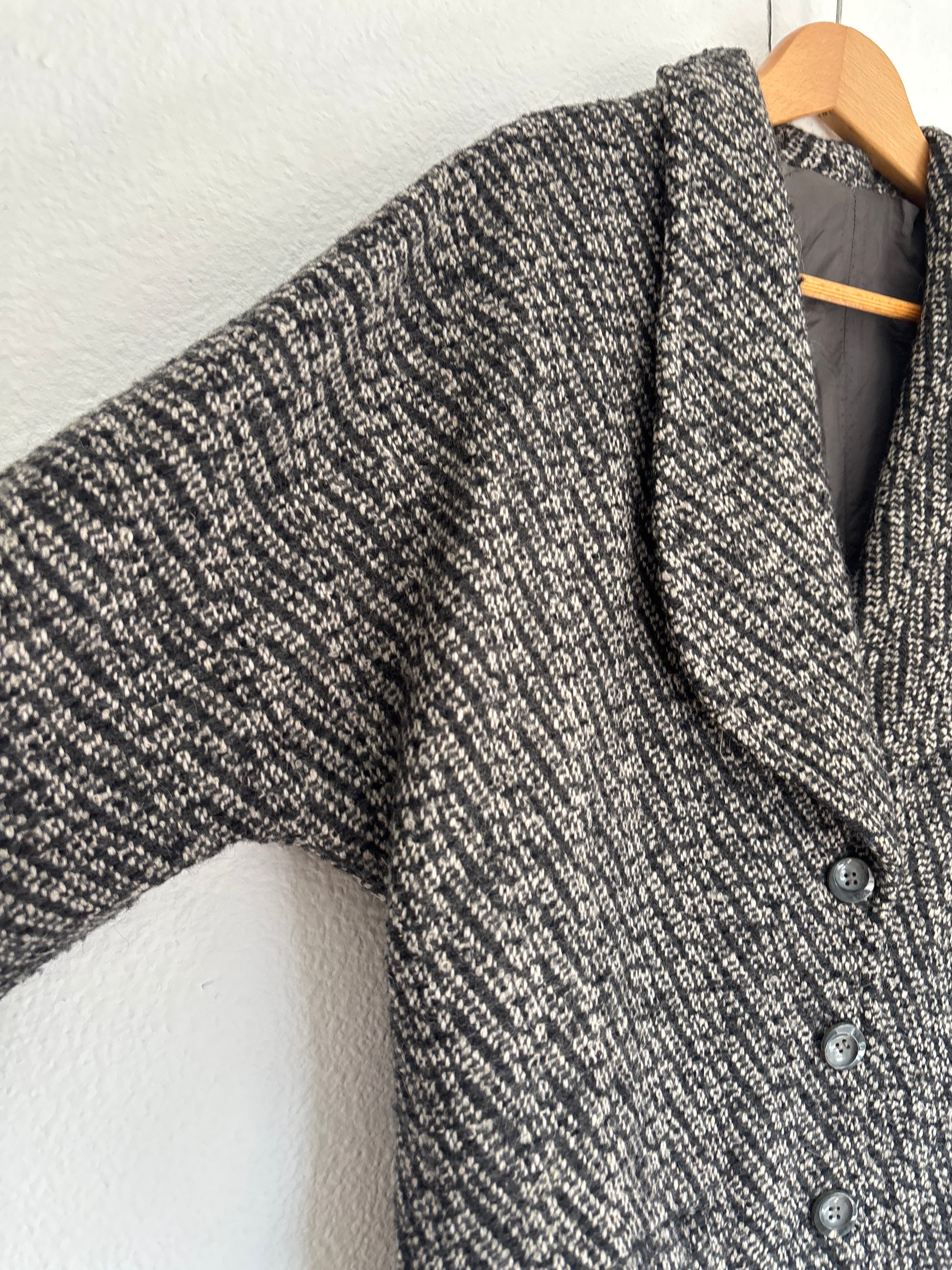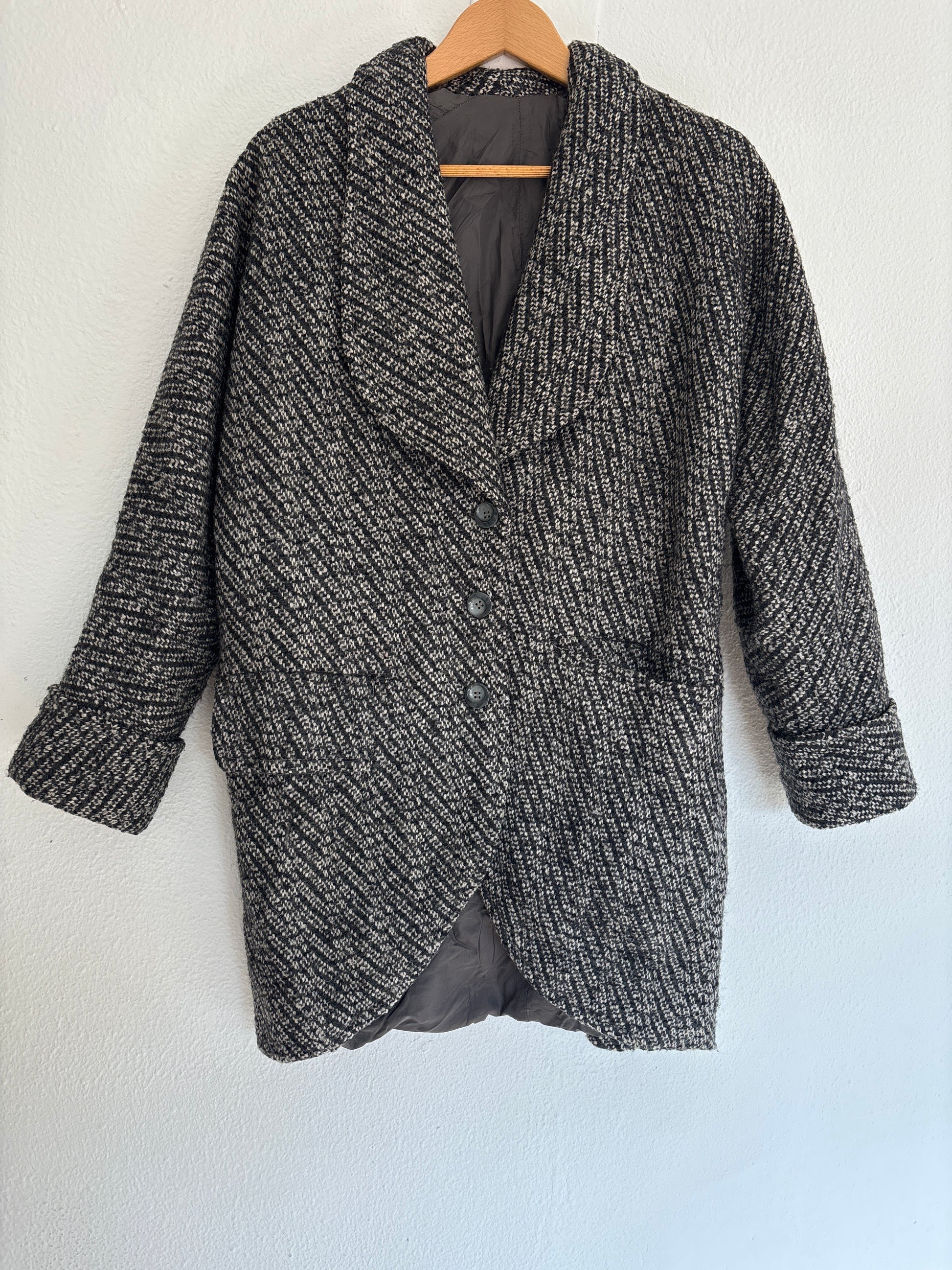 ·CARACTERISTICAS: Corte ancho de mangas y más ajustado de cadera. Jaspeado, con cuello ancho. Mangas murciélago. Está forrado y totalmente hecho a mano de modista. Una pieza con mucho rollo, de calidad y atemporal.
