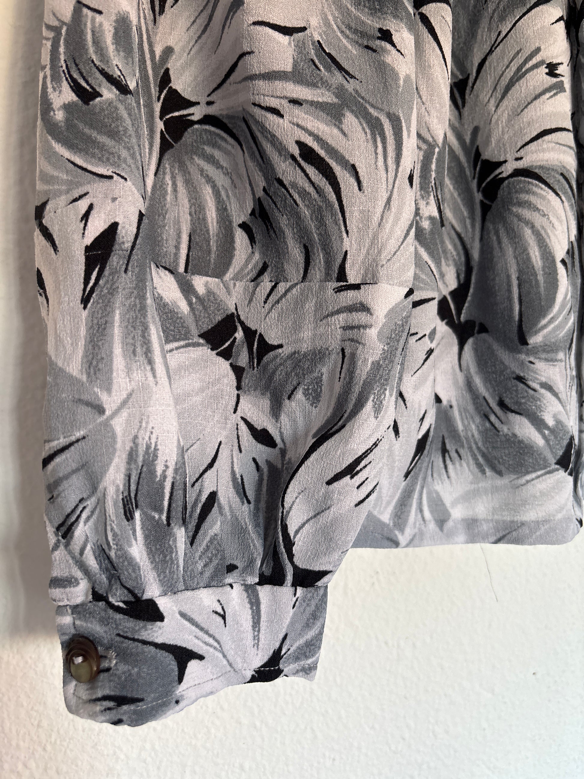 ·CARACTERISTICAS: gris con estampado de flores precioso, de corte ancho. No es elástica. Abrigadita y fácil de combinar. Está hecha de modista y tiene los botones de repuesto. Una maravilla.