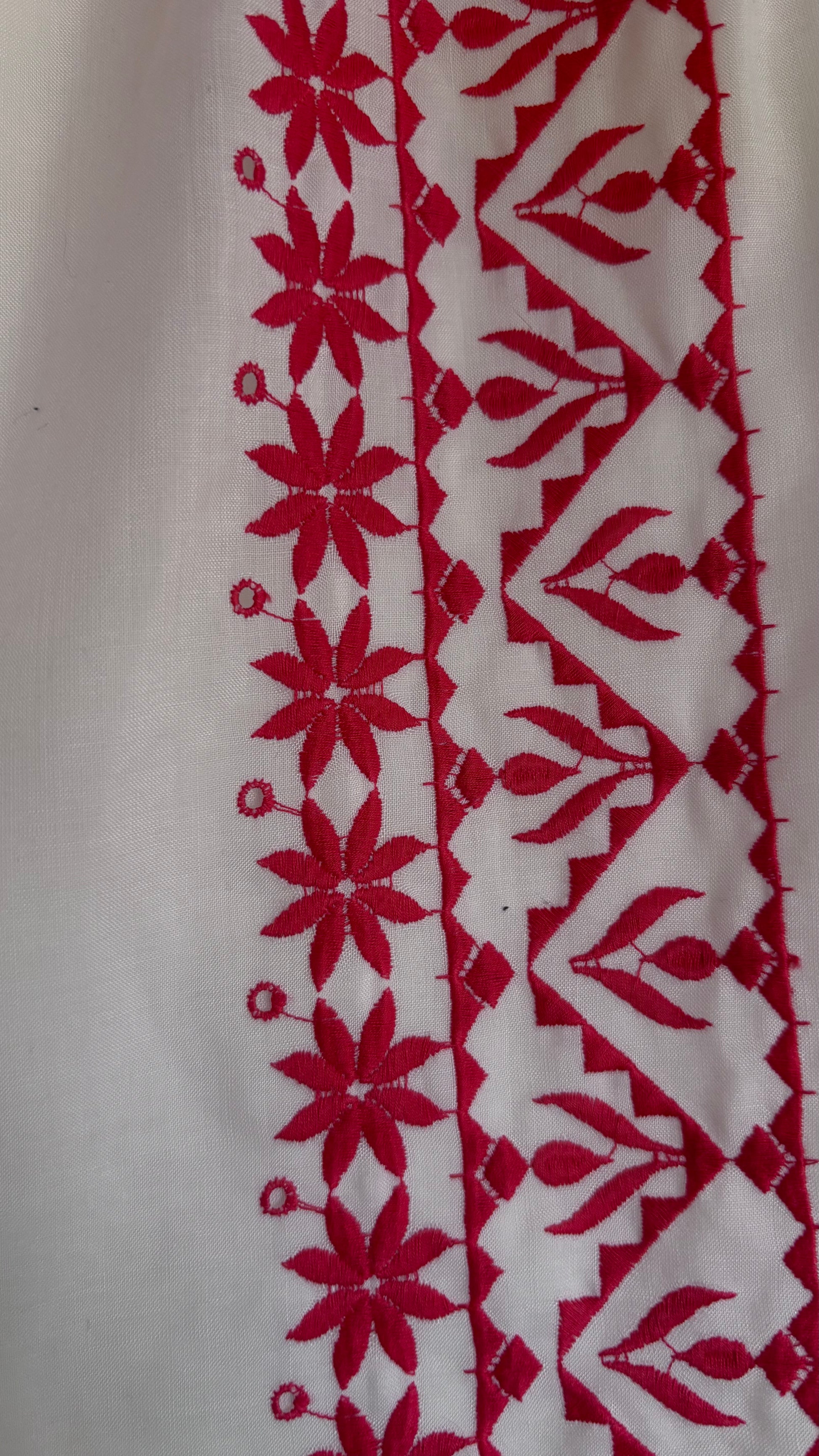 ·CARACTERISTICAS: De algodón mezcla, totalmente bordada. Mangas anchitas, elásticos en los puños. No es elástica y el tejido es fino y un poco transparente. Una verdadera joya de la época,impecable.