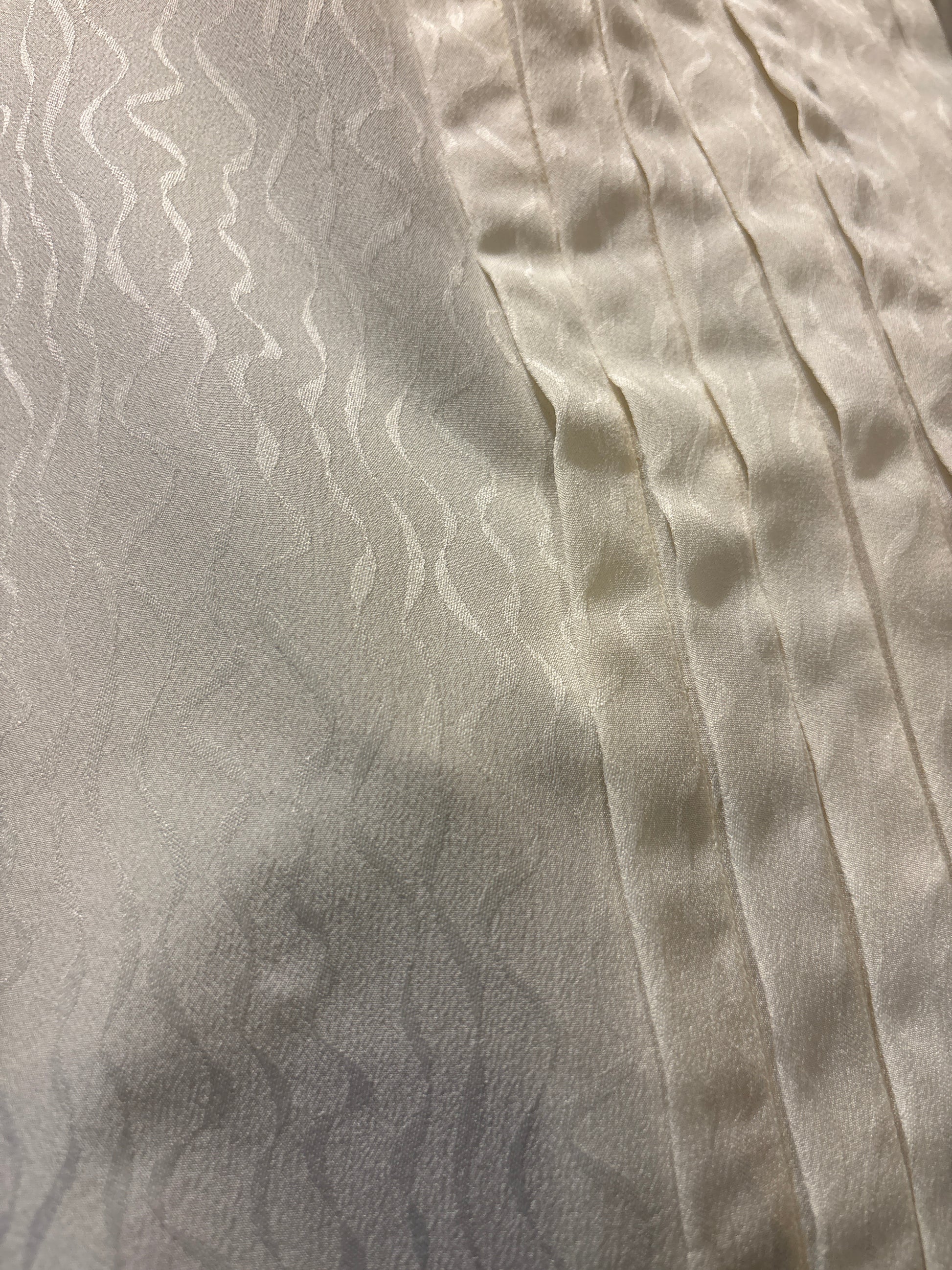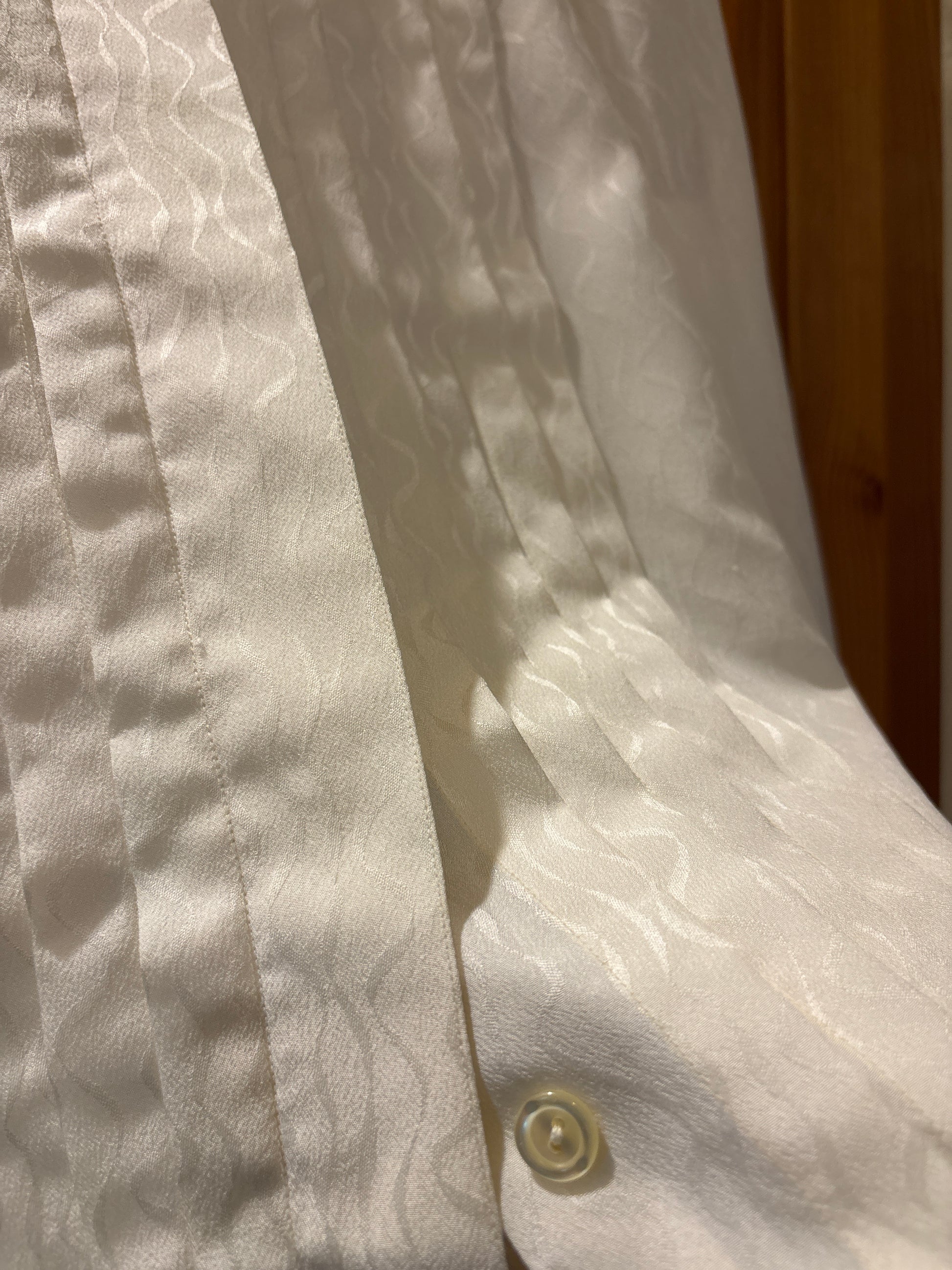 ·CARACTERISTICAS: preciosa camisa color perla con costuras frontales y tejido con motivos geométricos. No es elástica y tiene corte recto, ideal para llevar oversize. Un clásico con un toque diferente que va con todo.