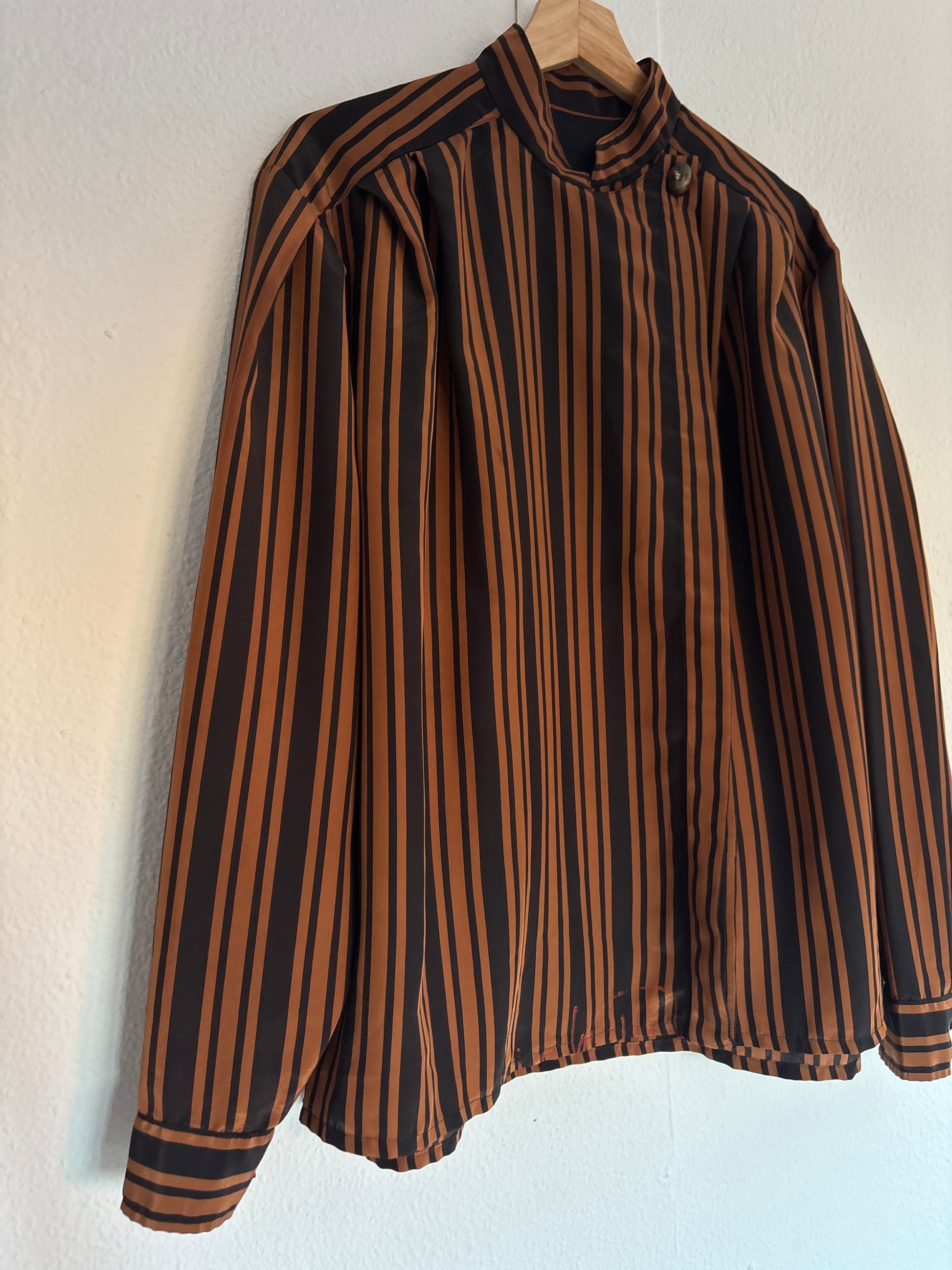 ·CARACTERISTICAS: de rayas, tejido muy suave y con mucha caída. No es elástica. Cuello mao. Está hecha de modista, tiene un diseño chulísimo y da mucho juego.
