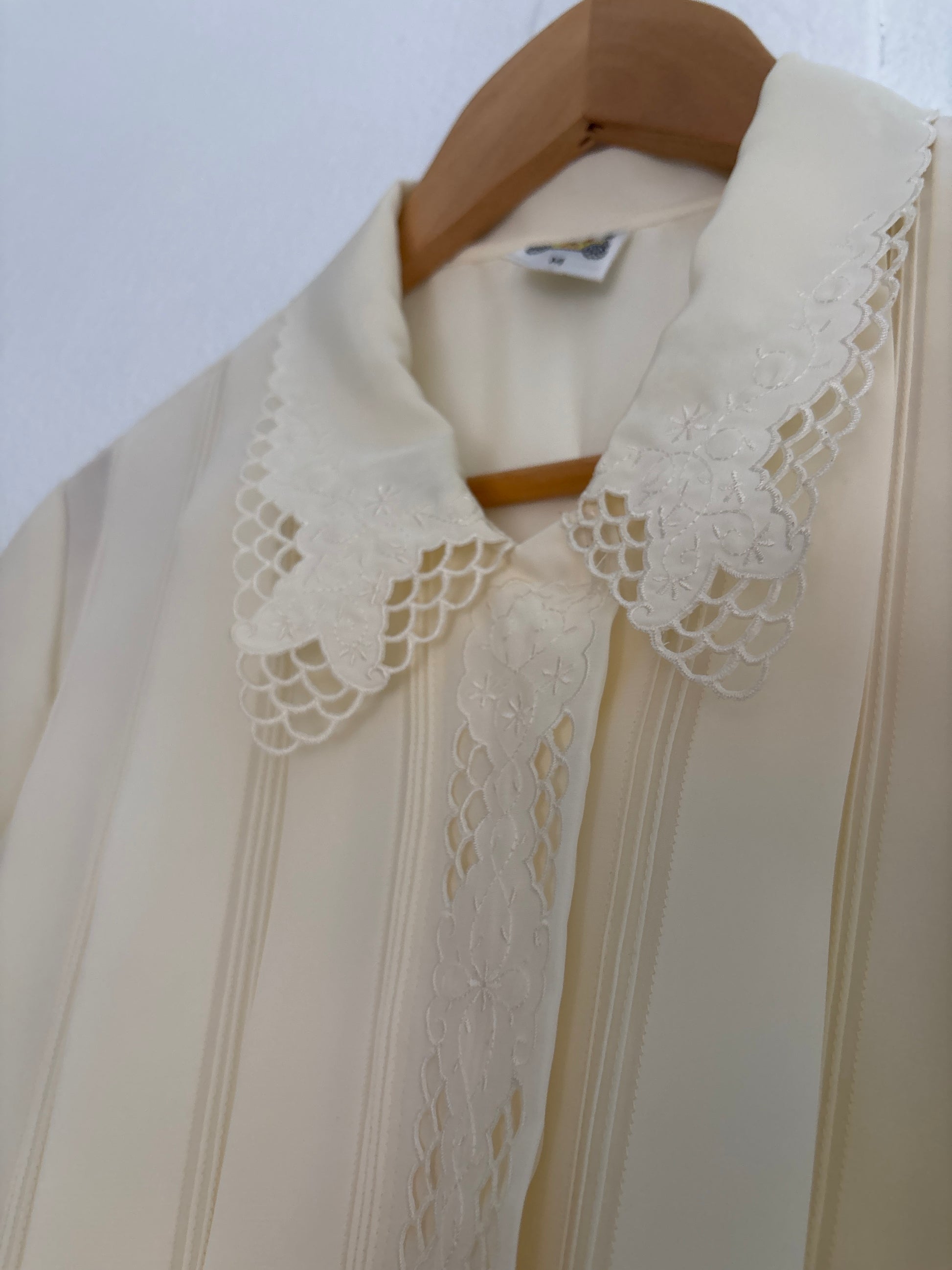 •CARACTERÍSTICAS: preciosa camisa color crema bordada, con cuello precioso. No es elástica. Un clásico que va bien con todo, principalmente con piezas básicas. Elegante y atemporal.