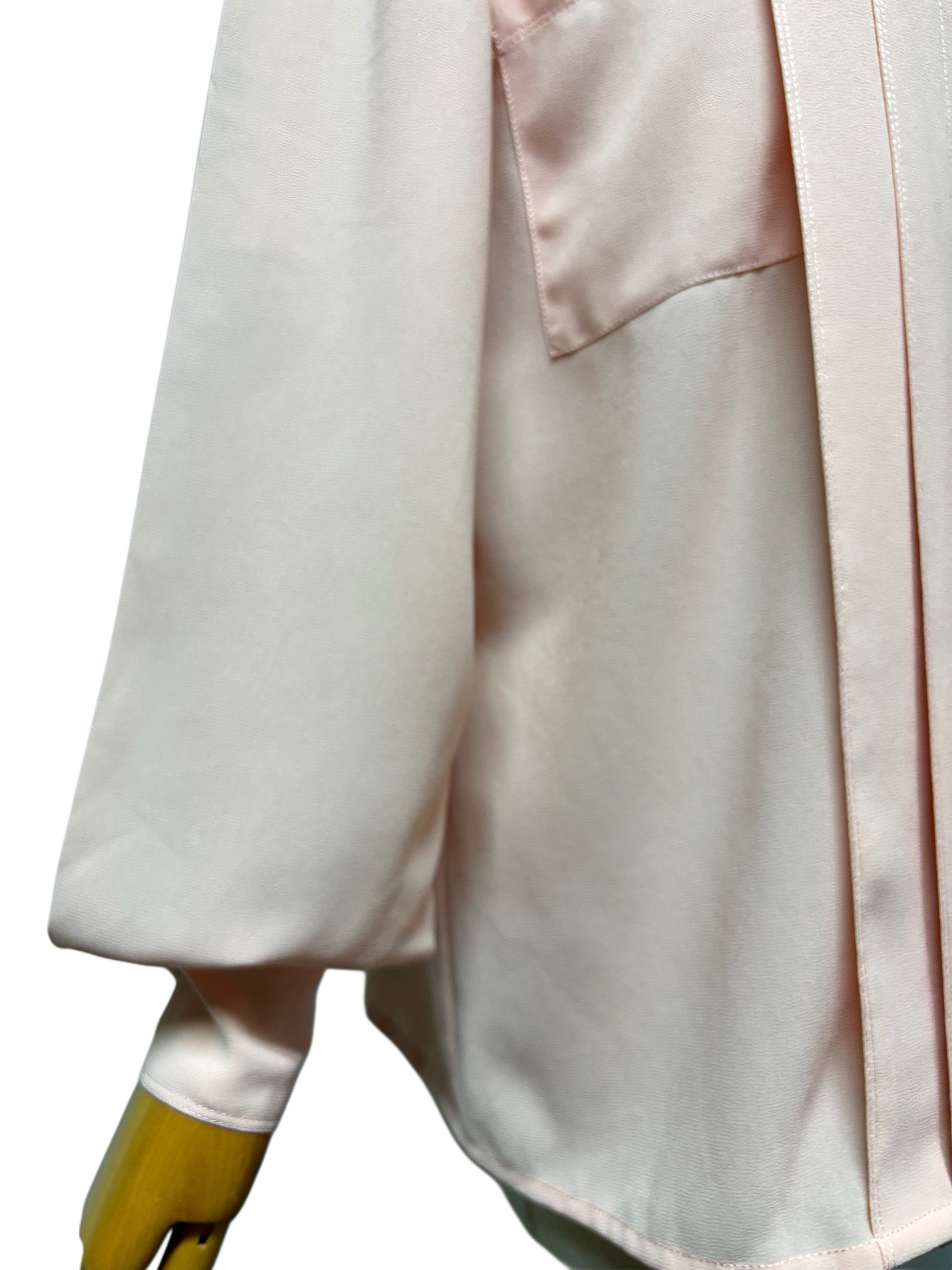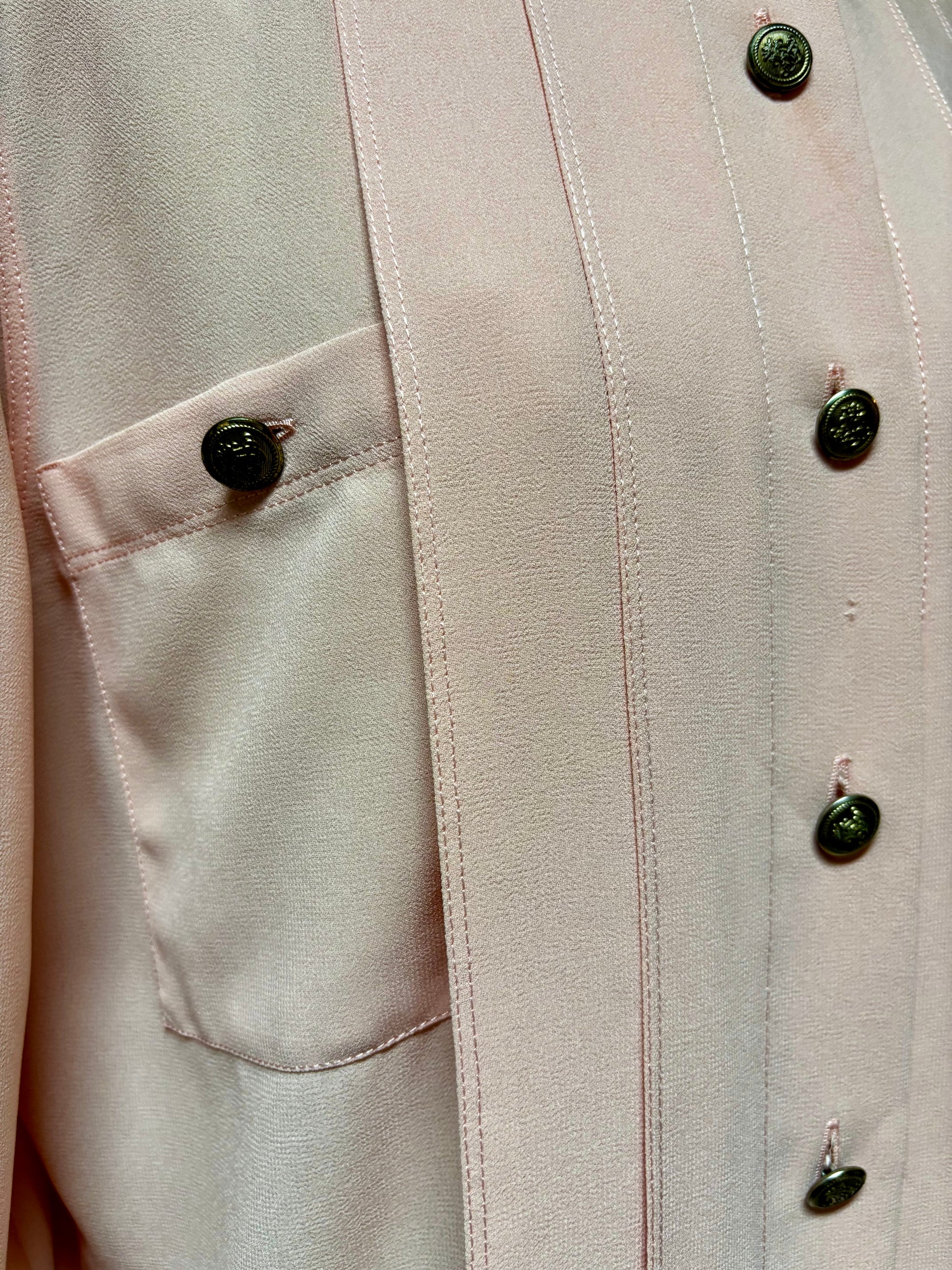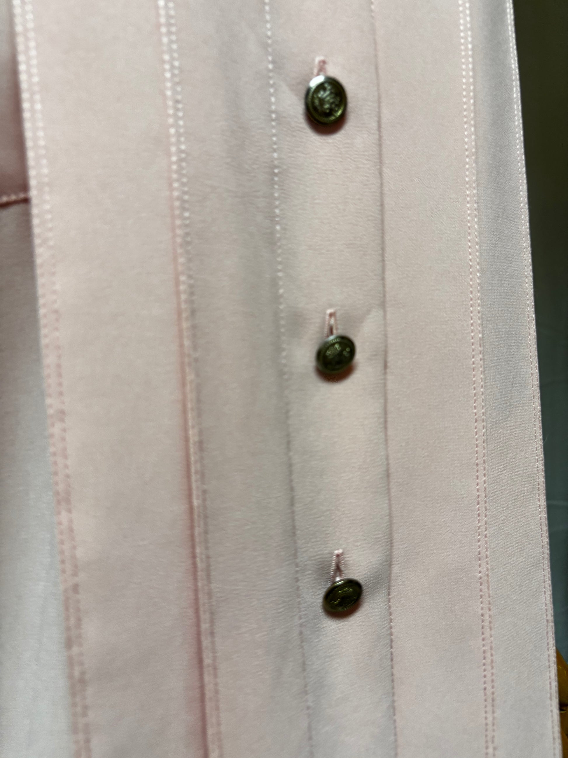 •CARACTERÍSTICAS: rosa clarito, botones de metal. Tiene mucha caída, es fresca y fácil de combinar. No estira. Una pieza clásica que va con todo.