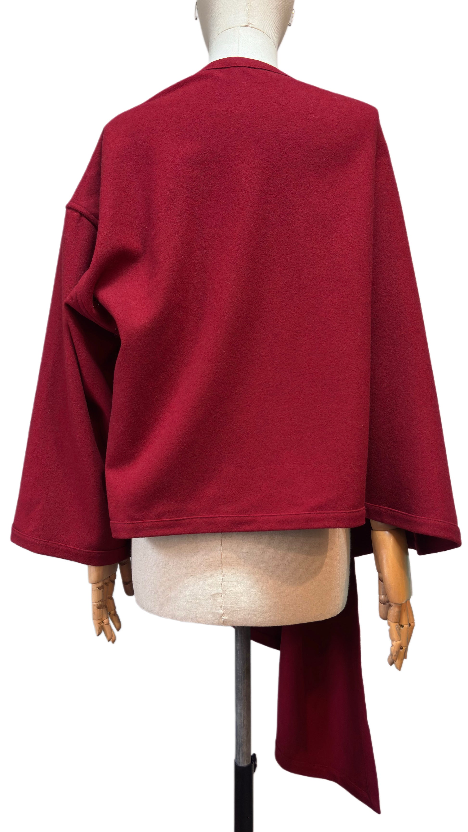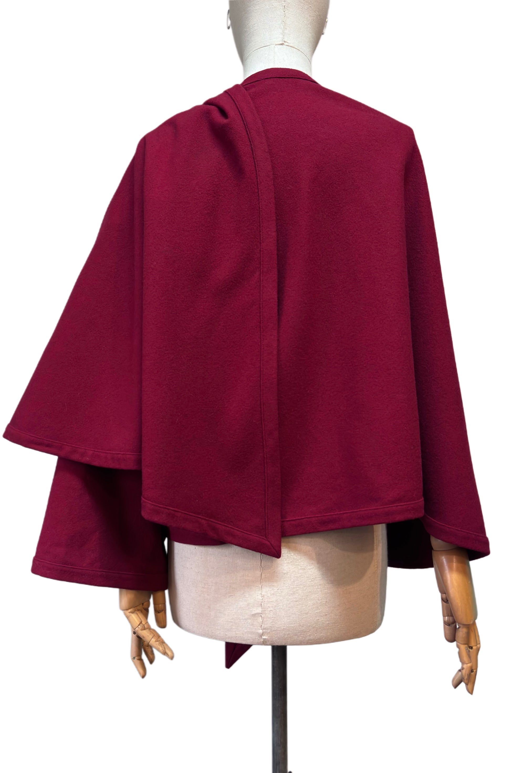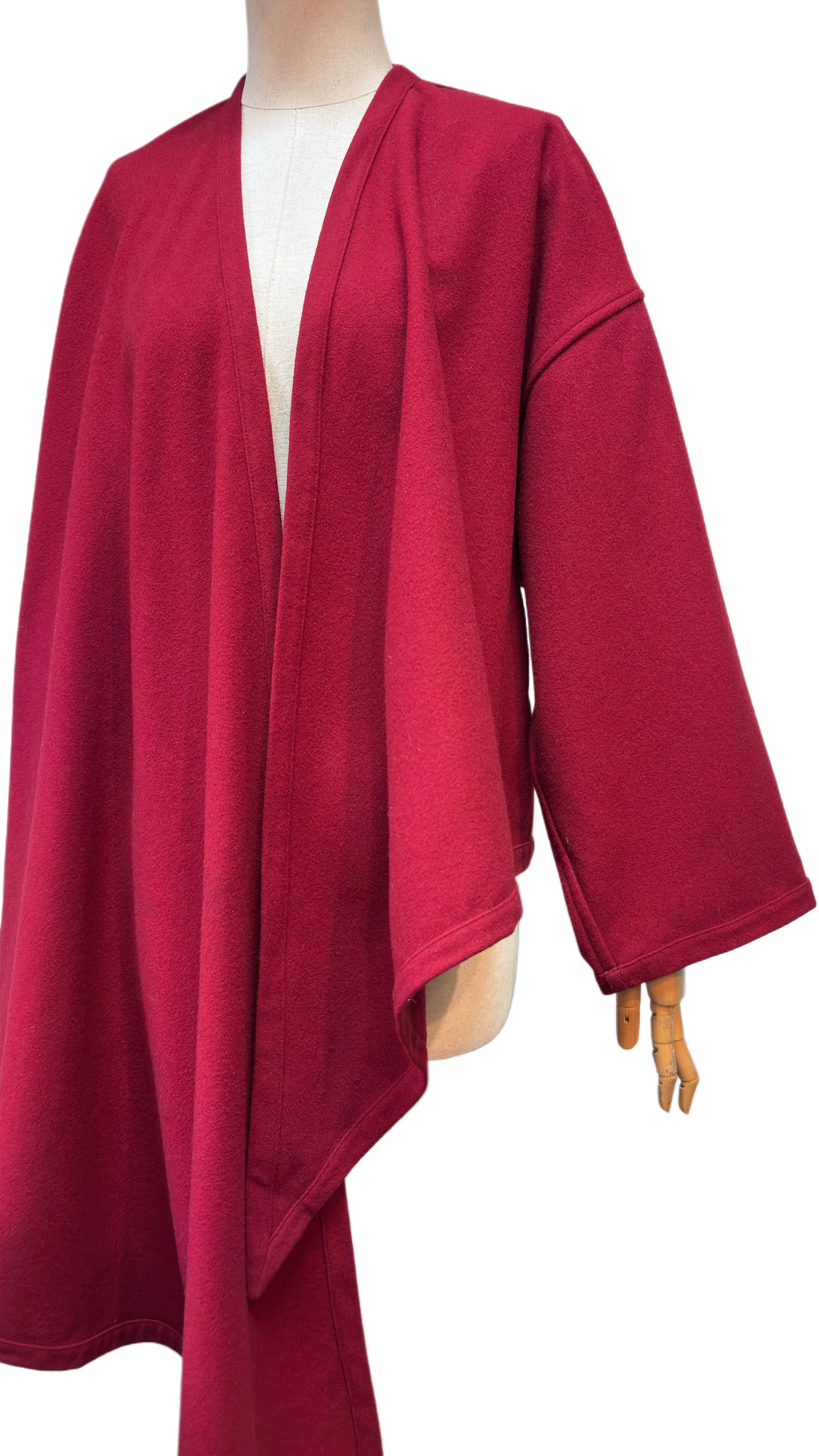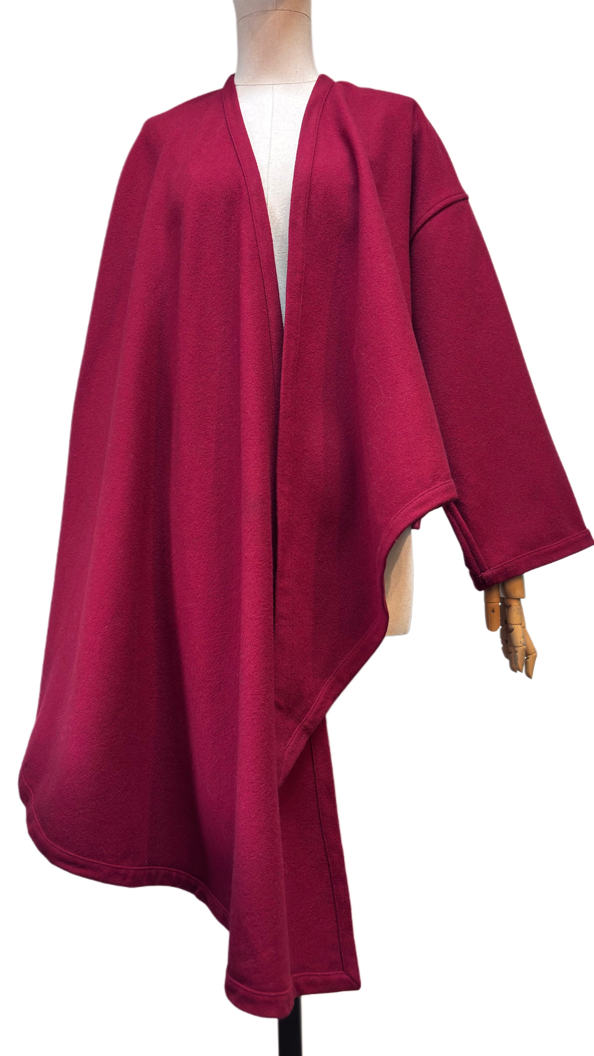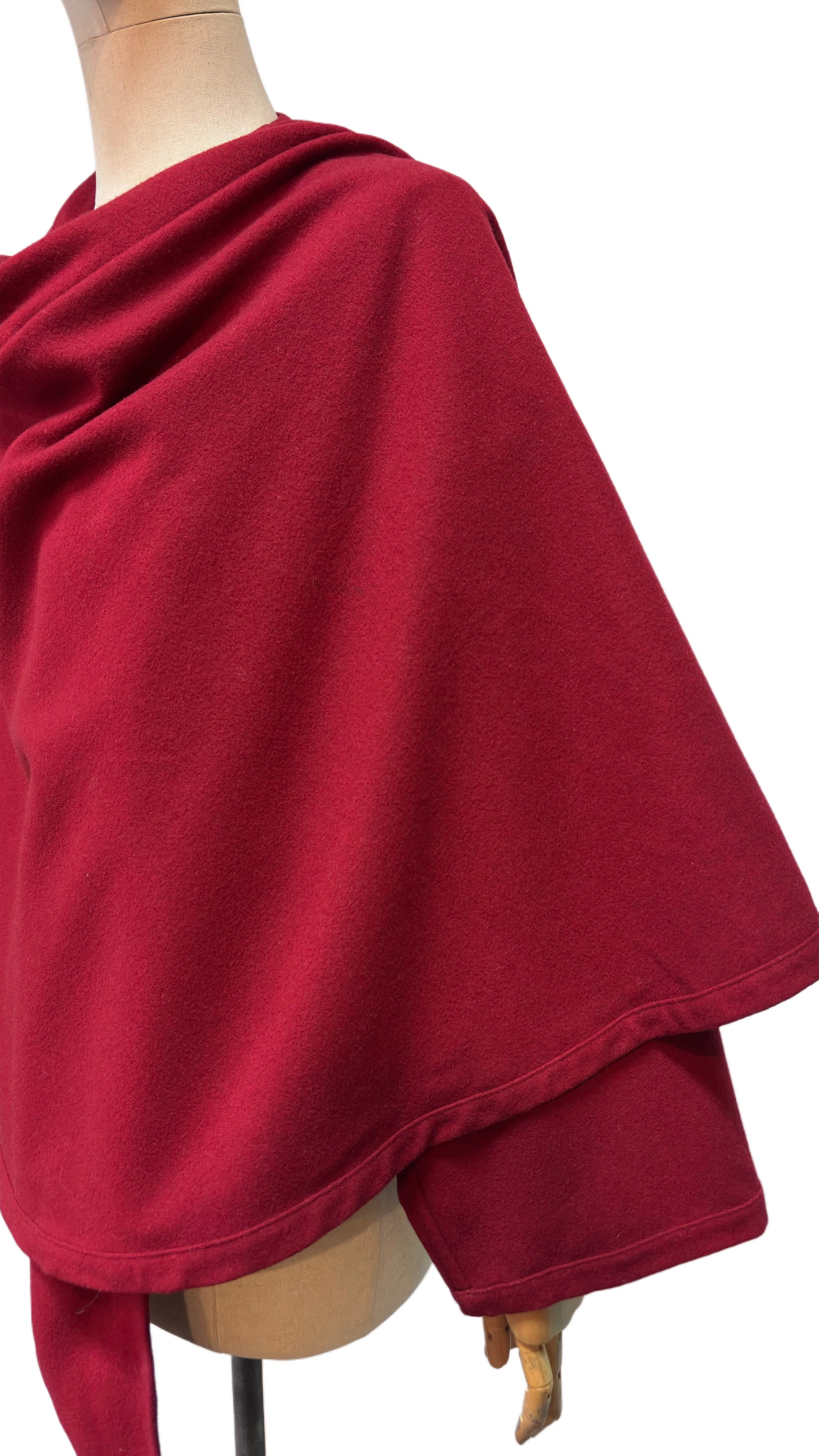 ·CARACTERISTICAS: capa de lana color granate. Es un diseño muy original y diferente, y se puede llevar de muchas maneras. Abriga mucho y es muy elegante. Suelta, con un cinturón o recogida, es ideal para dar un toque de estilo a cualquier look básico. No está forrada.