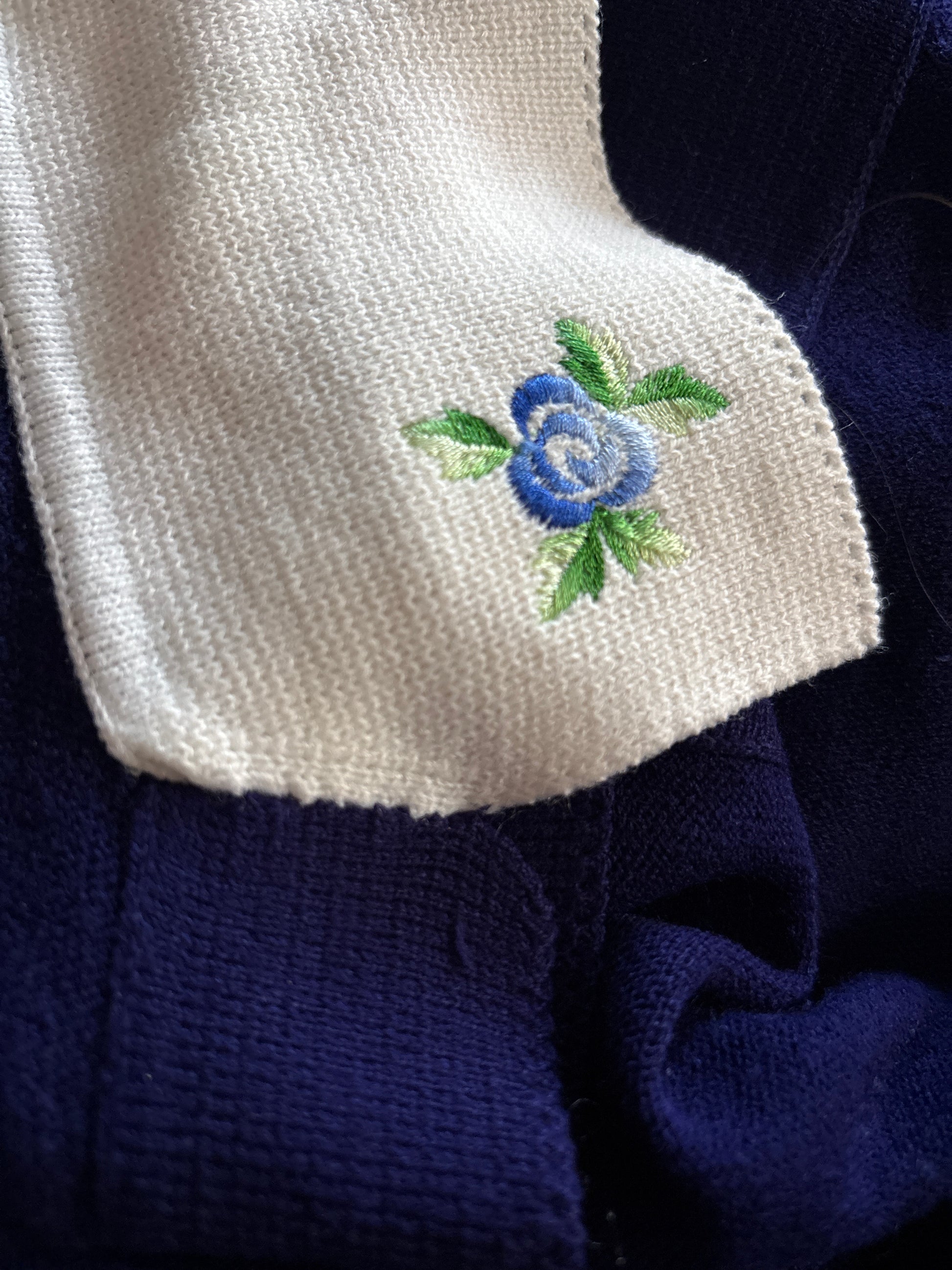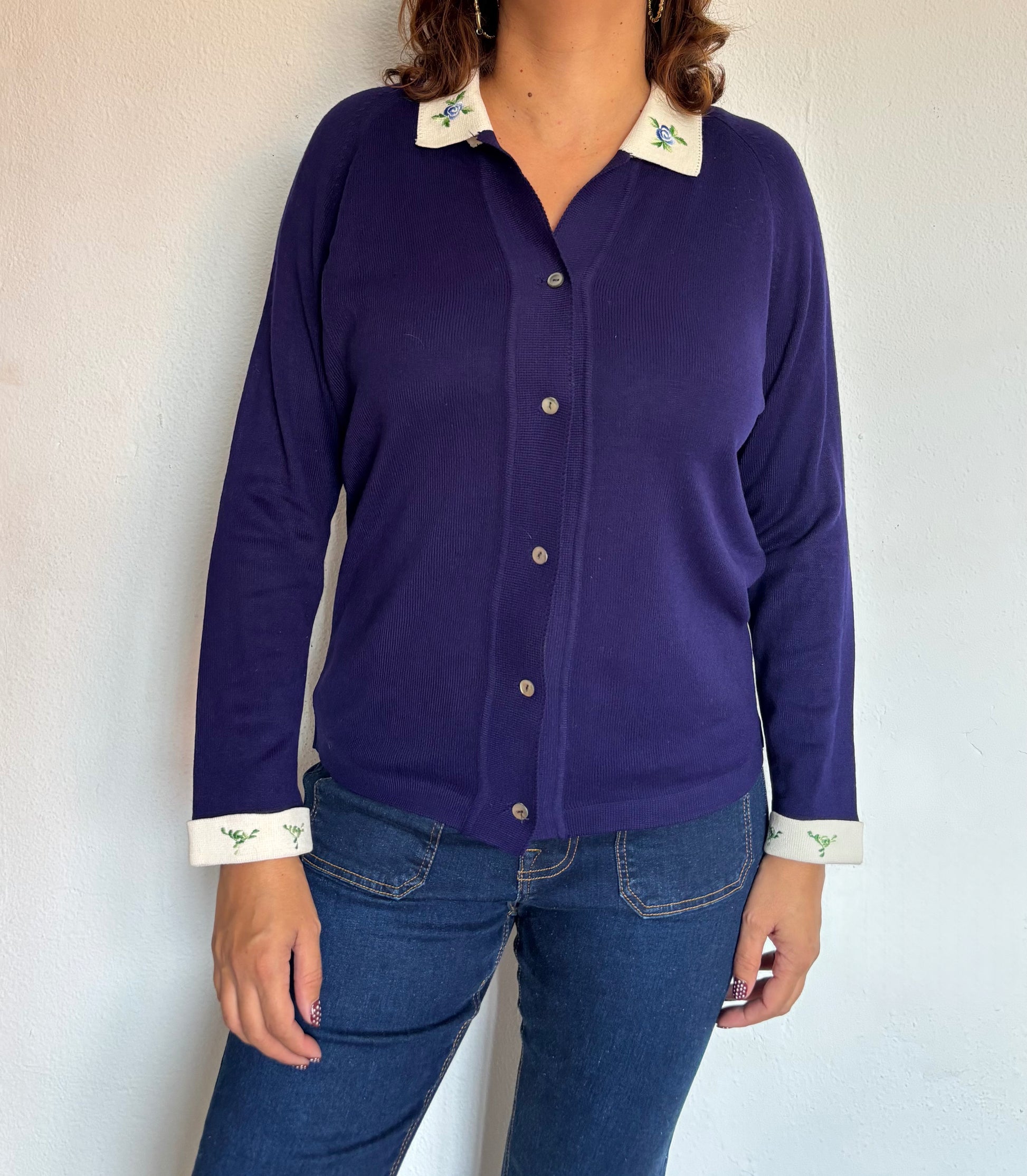 ·CARACTERISTICAS: color azul marino, con cuello y puño bordados. Es una monada y va con todo! Finito, ideal para entretiempo.