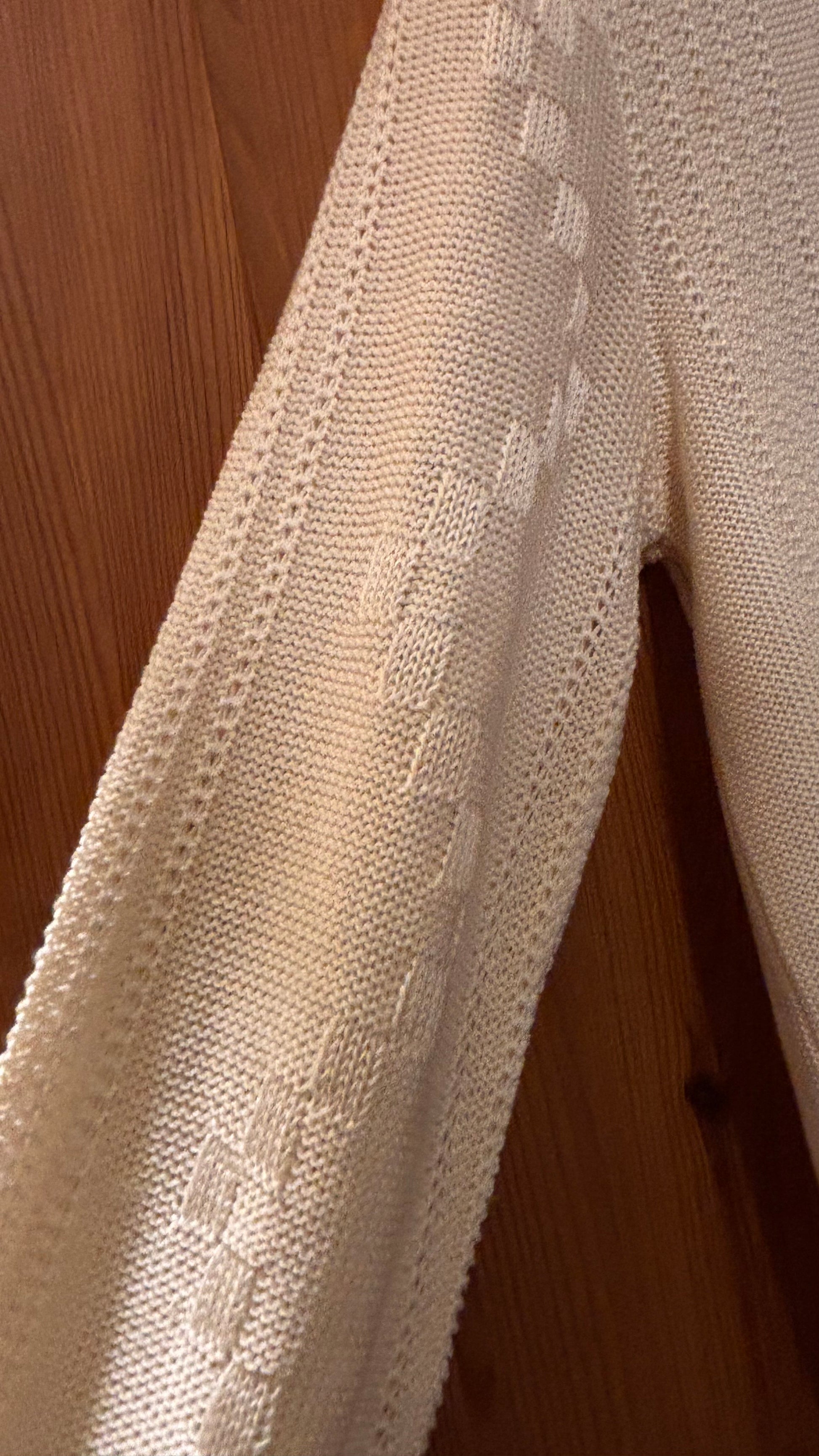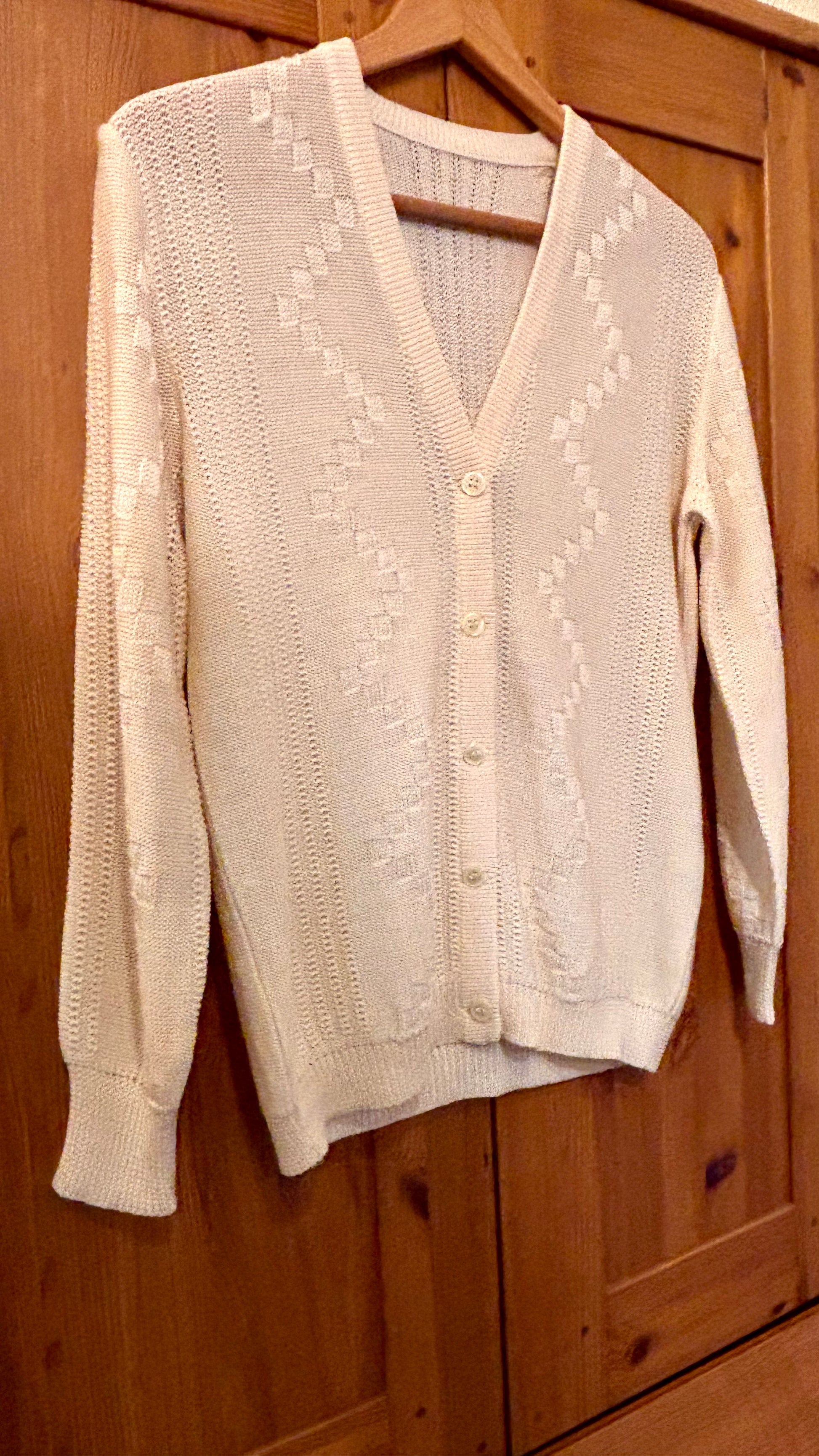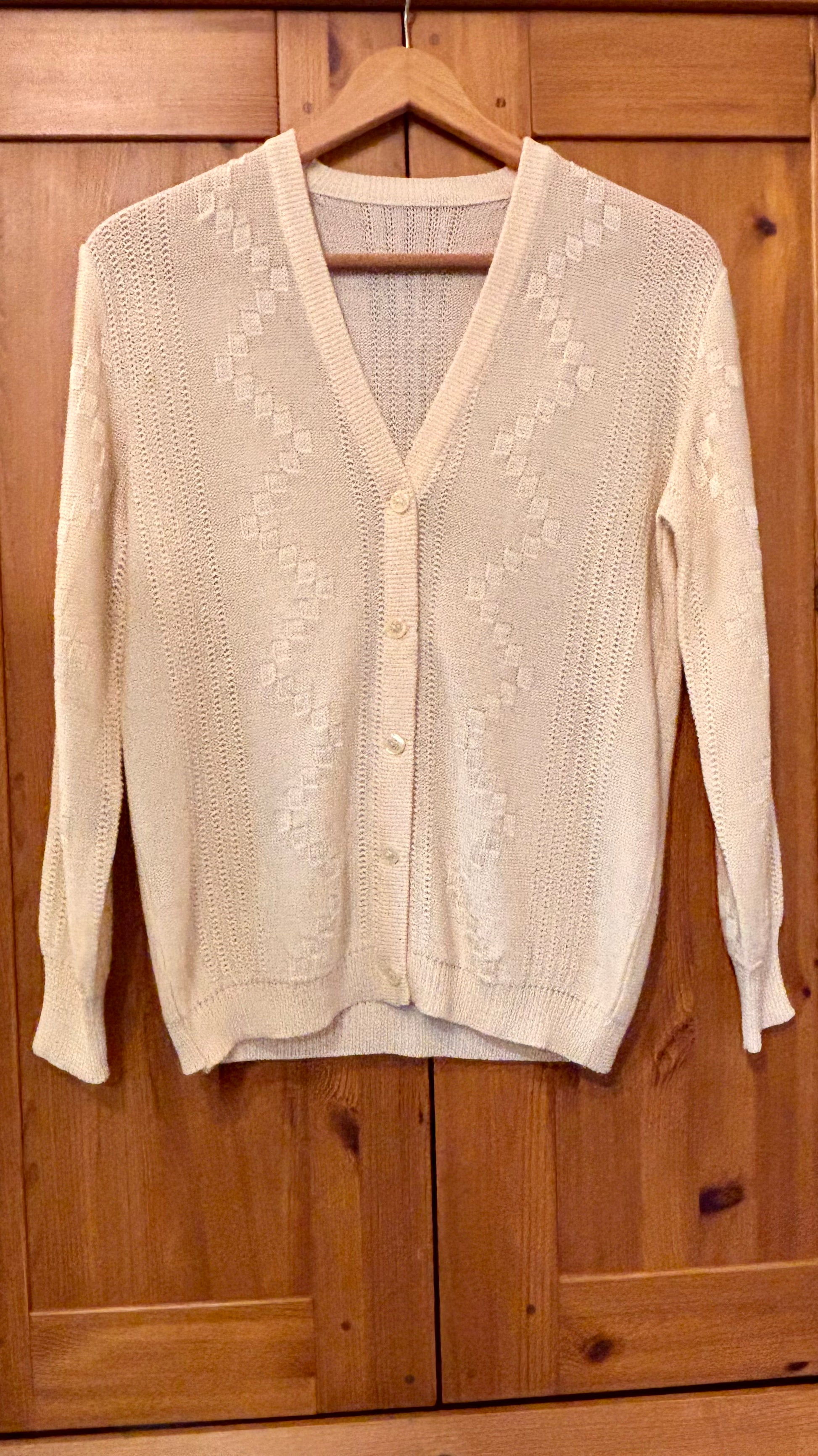 ·CARACTERISTICAS: precioso cárdigan con motivos de cuadros, color beige. Es una prenda ideal para llevar con jerséis o camisas, un clásico de calidad que va con absolutamente todo, pero con un toque muy especial. Es algo elástico y se adapta perfectamente al cuerpo.