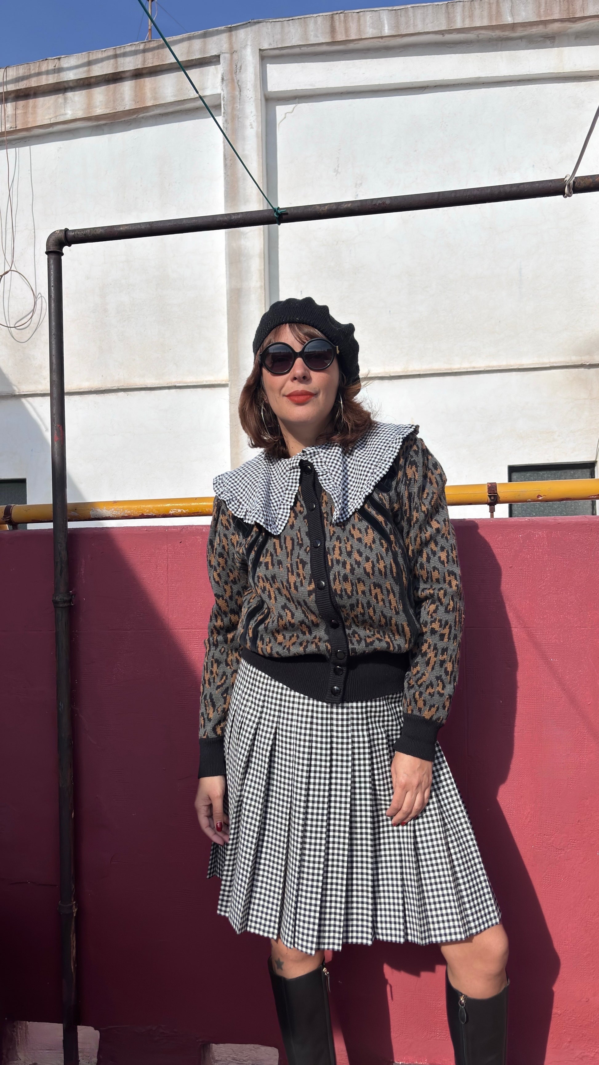 ·CARACTERISTICAS: precioso cárdigan gris y negro con estampado de leopardo. Detalles en tercio pelo, en forma de lazo. Es elástico y viste anchito. Ideal para llevar oversize. Una prenda muy especial!
