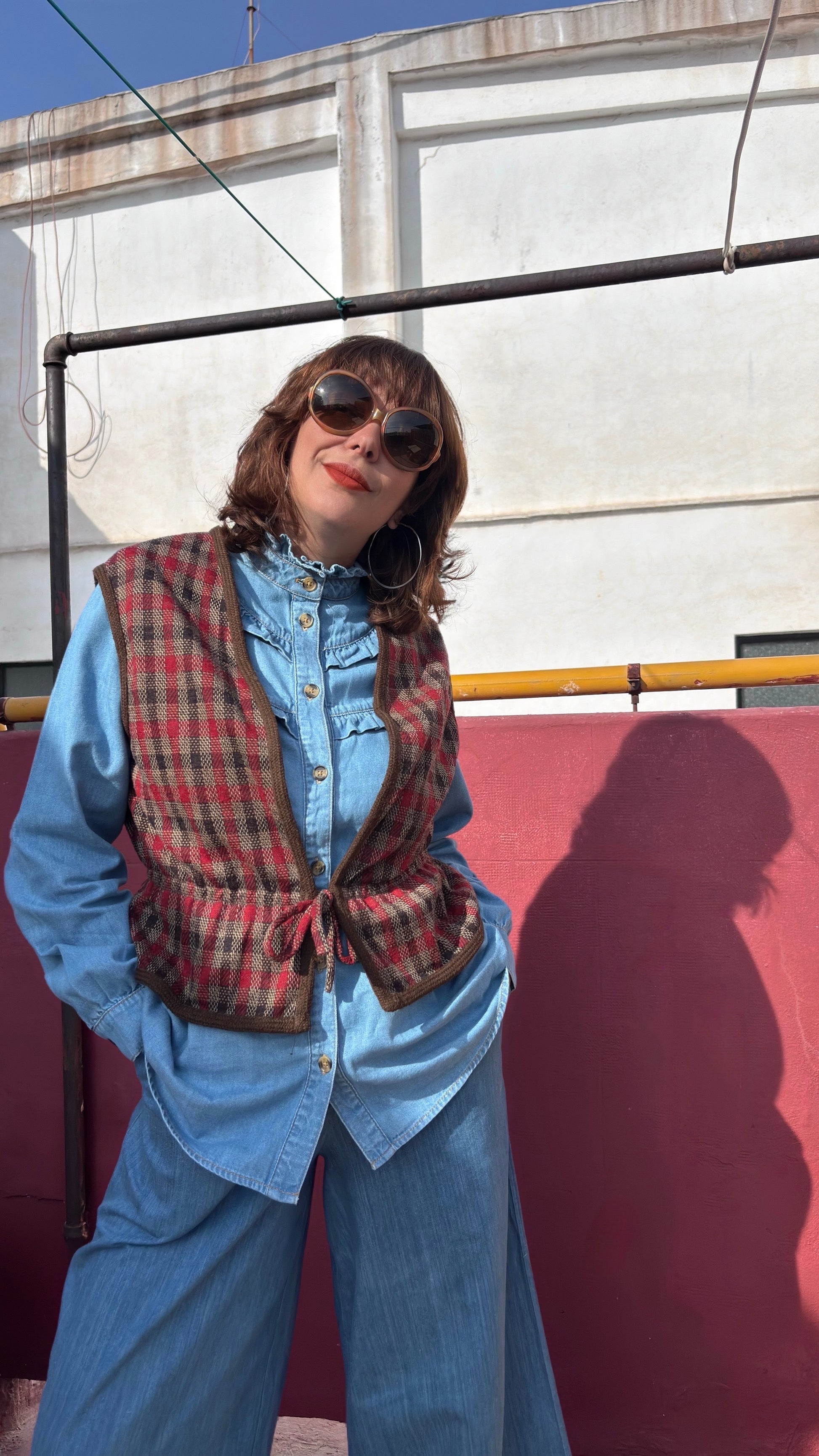 ·CARACTERISTICAS: chaleco de lana de cuadros, hecho a mano. Calentito, sin forro, cierre con lazo frontal. Es una pieza fantástica que va con todo y de mucha calidad.