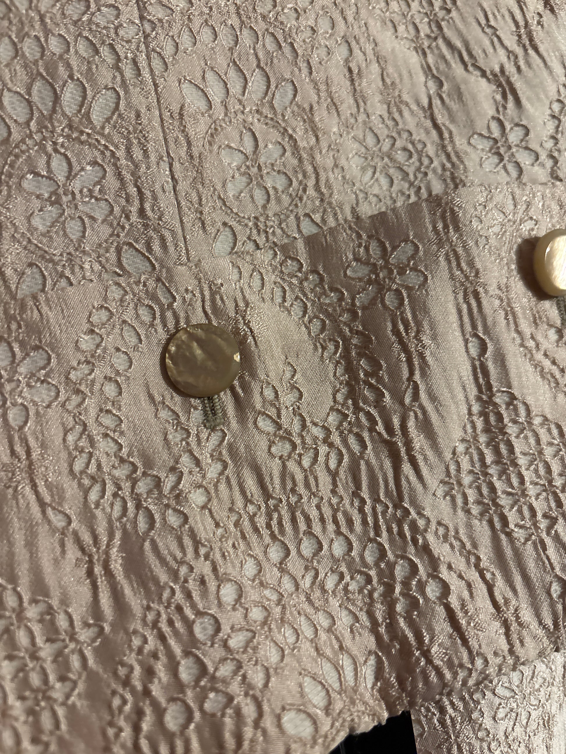·CARACTERISTICAS: preciosa chaqueta original de Escada color beige, bordada, con botones nacarados. Es una pieza muy elegante, especial y está nueva a estrenar. Atemporal y de calidad. Está forrada y no es elástica. El corte es evasé y se queda más abierta que en la foto (a mi me va estrecha). Precio de tienda marcado na etiqueta 1.299€. Marca una 38 pero la veo mejor para una 36 o una persona con poco pecho.