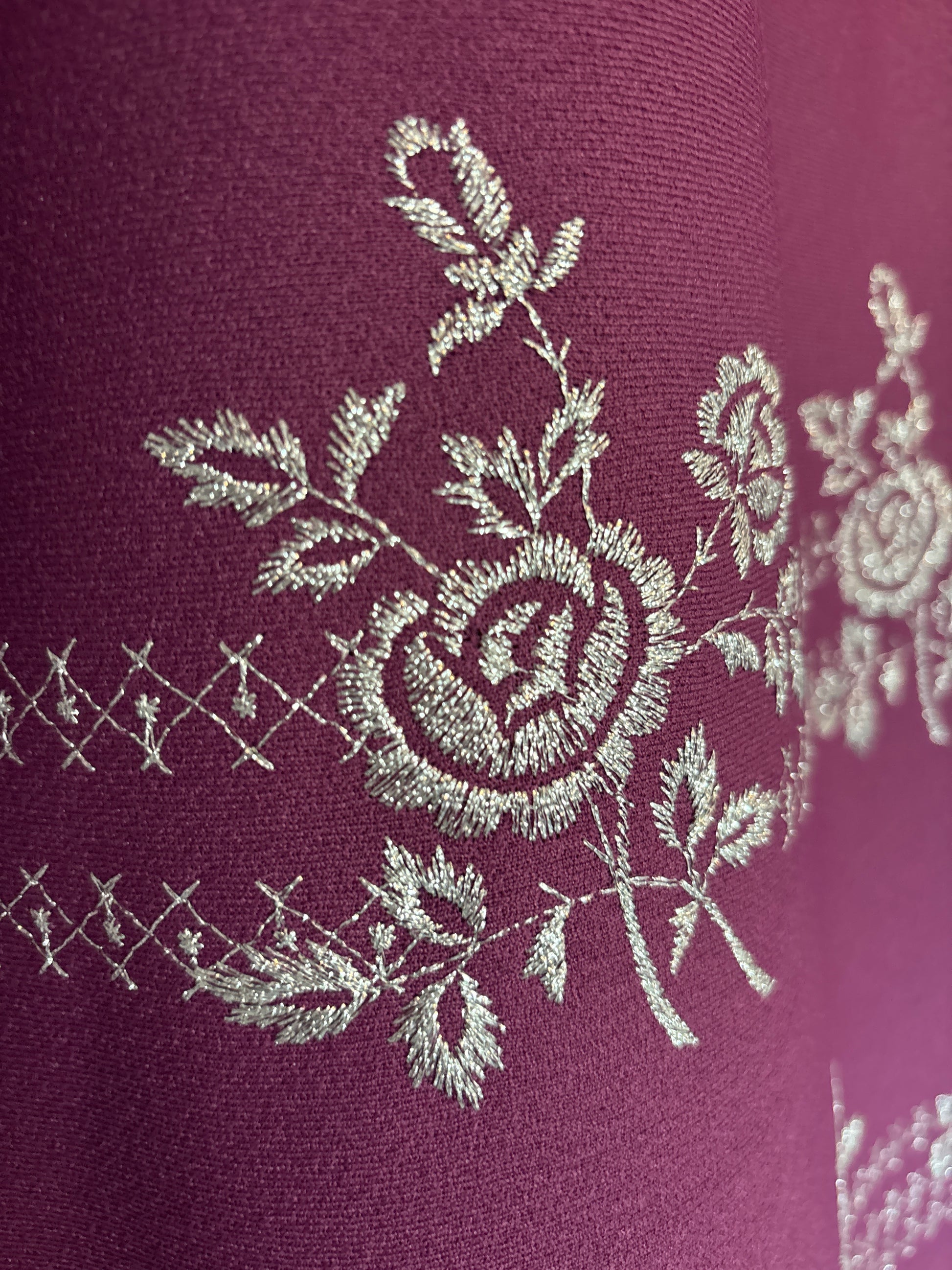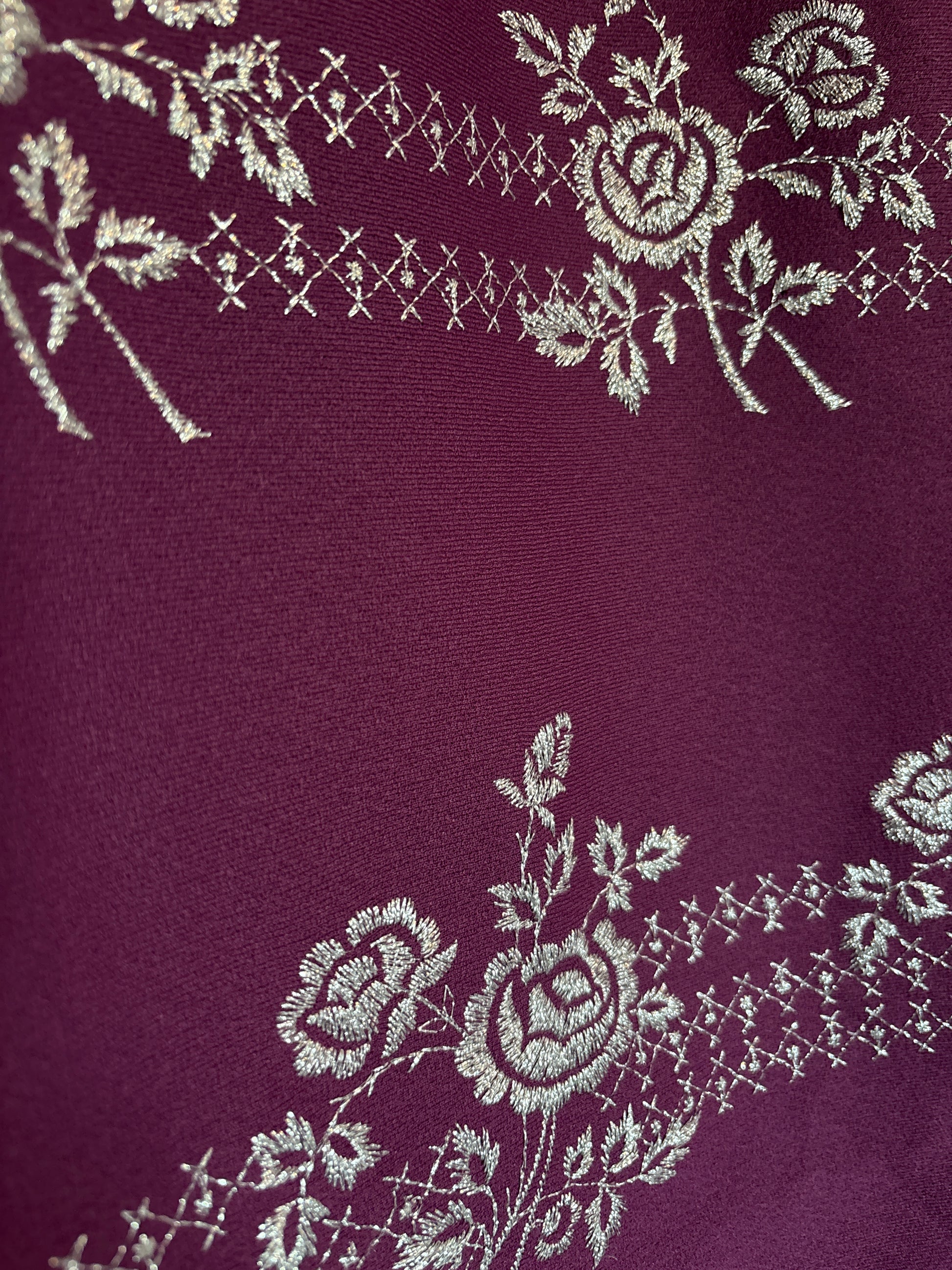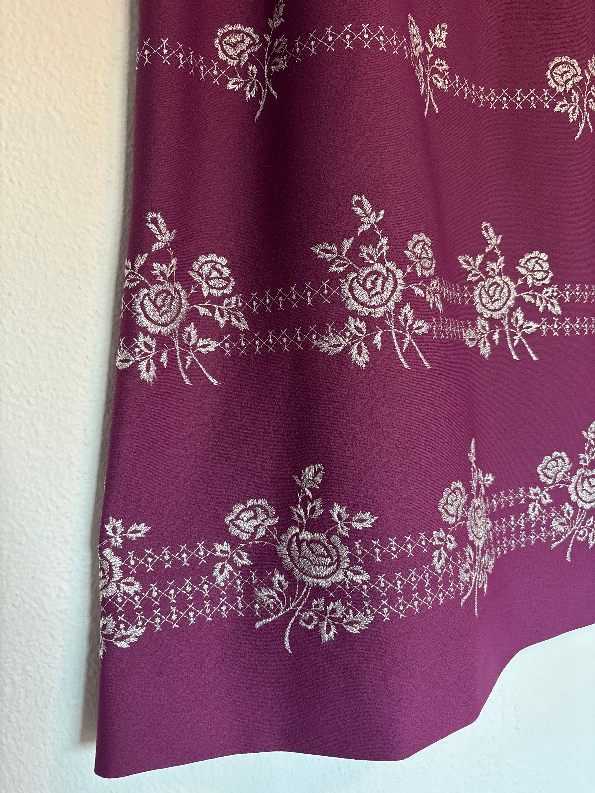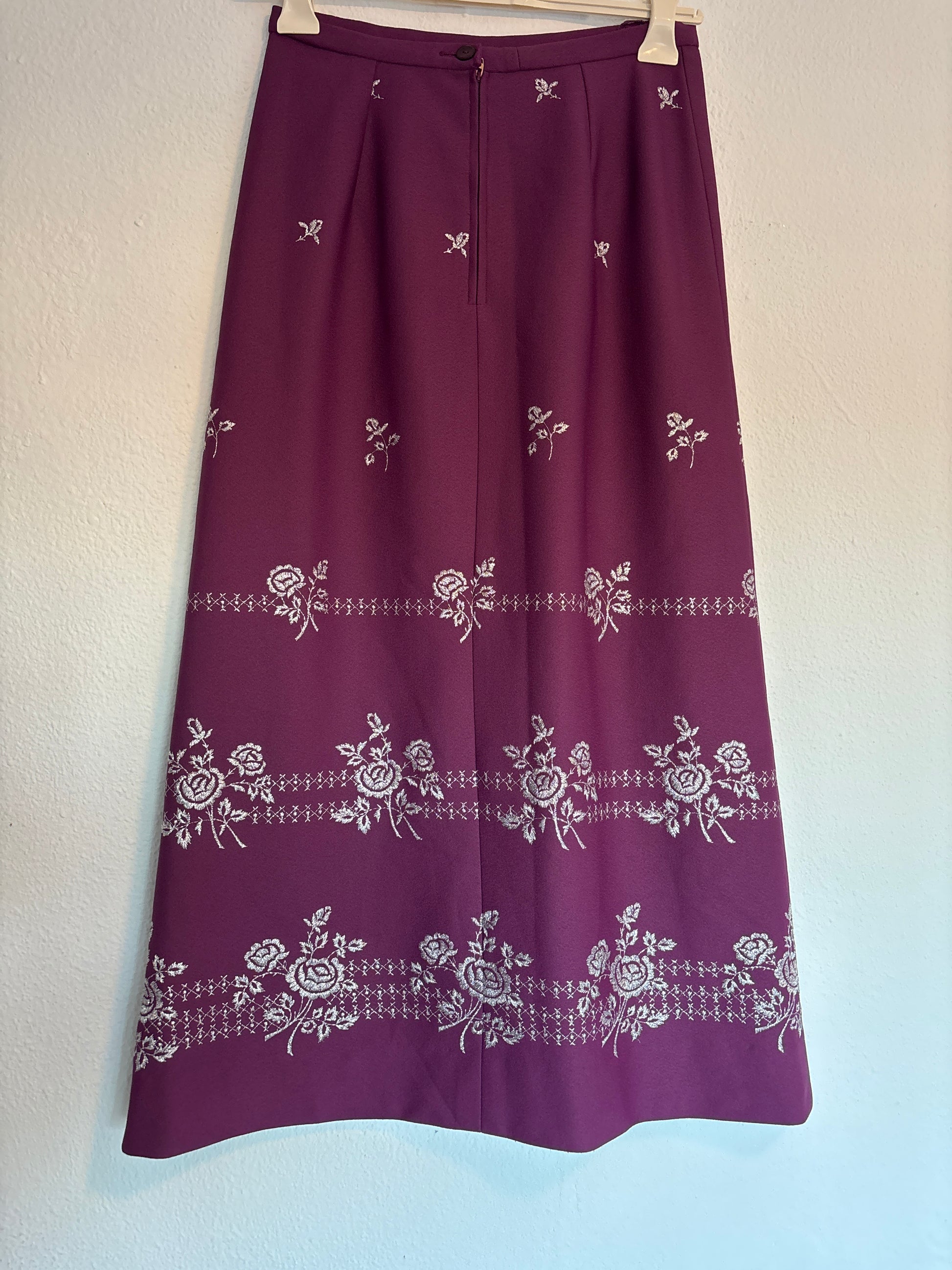 ·CARACTERISTICAS: maravilla de falda totalmente bordada de flores con hilos de lurex plateado. Es de cintura alta y está forrada. El color es precioso. Evasé, con cremallera trasera. El tejido es grueso y abriga. Es una pieza espectacular y muy especial, las fotos no le hacen justicia!