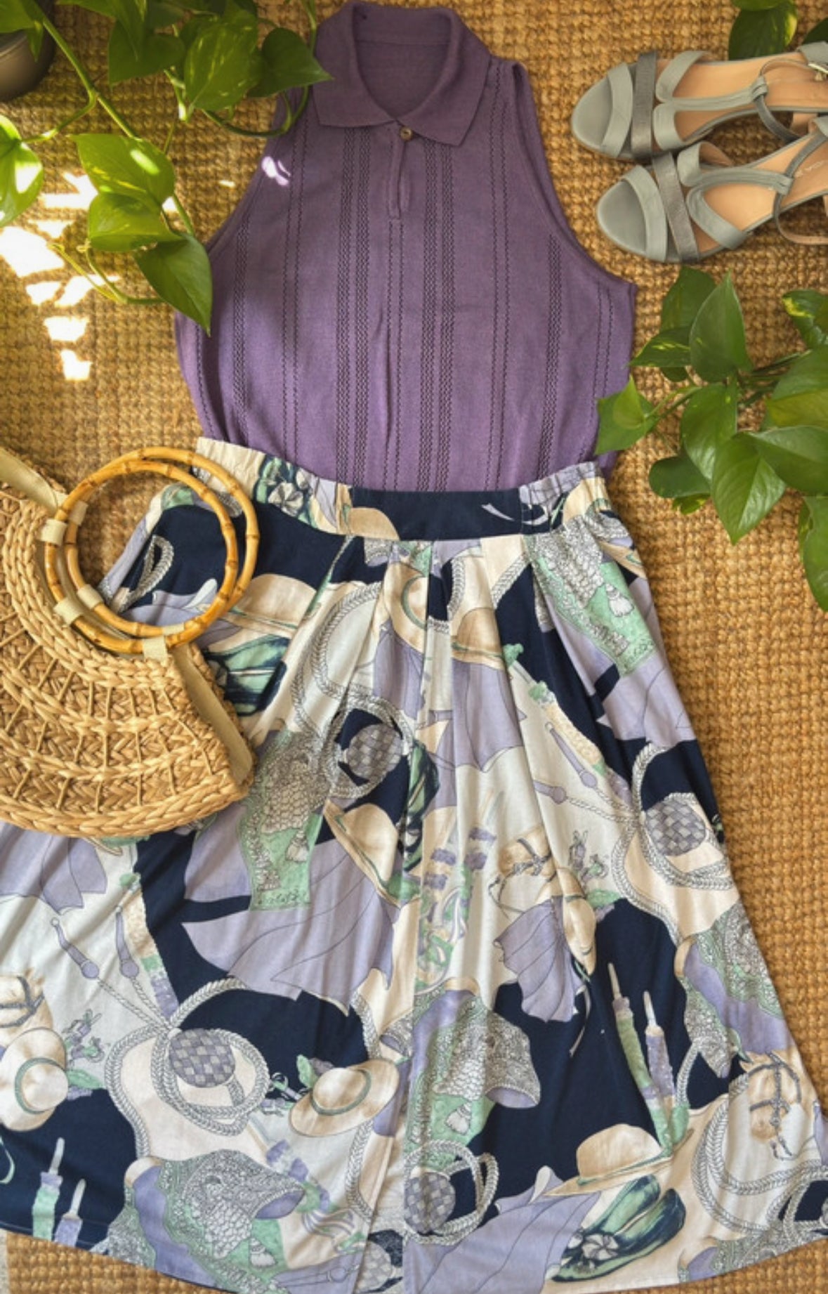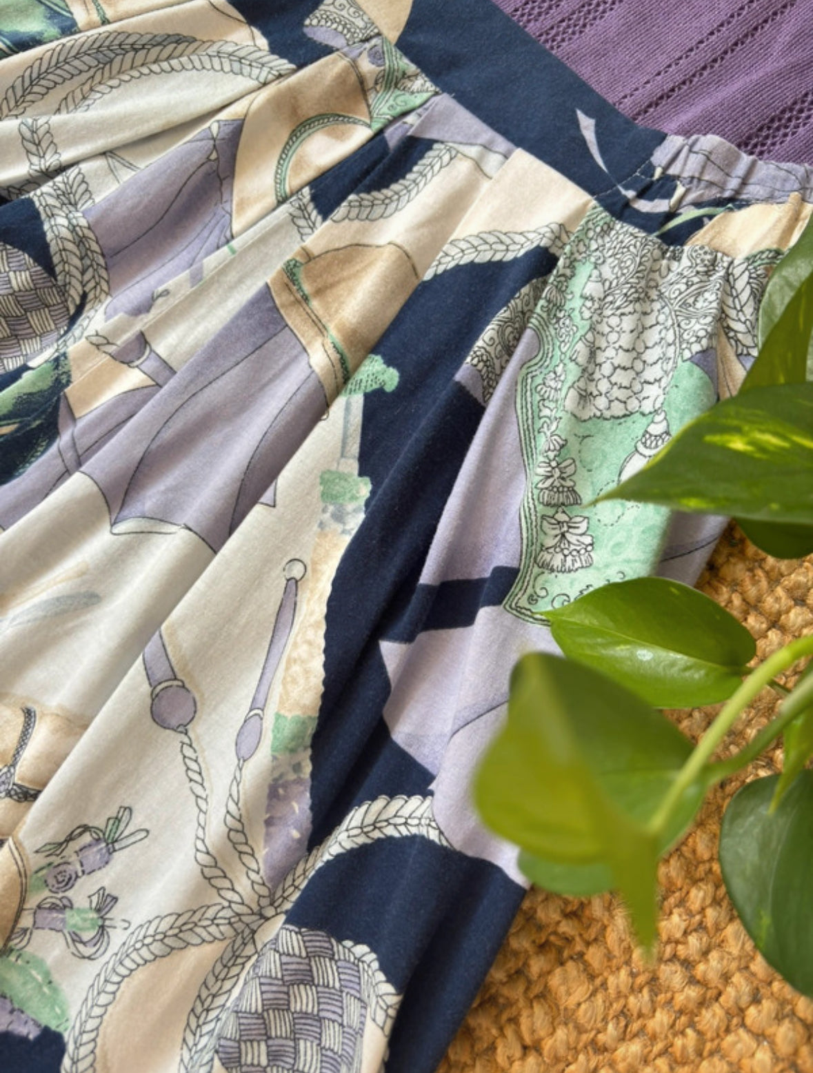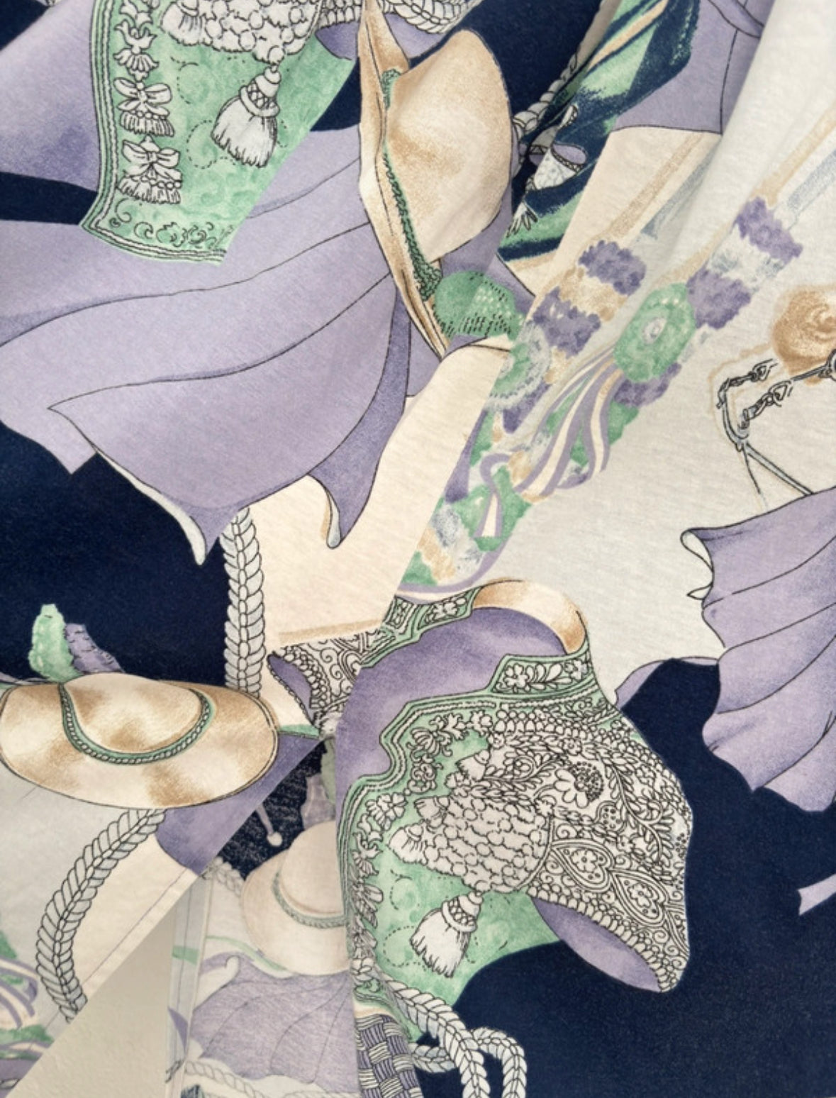 •CARACTERÍSTICAS: Estampado precioso, con tonos delicados de lila y beige. Tiene 50% algodón y 50% modal, ligera y fresquisima. Una pieza muy especial!