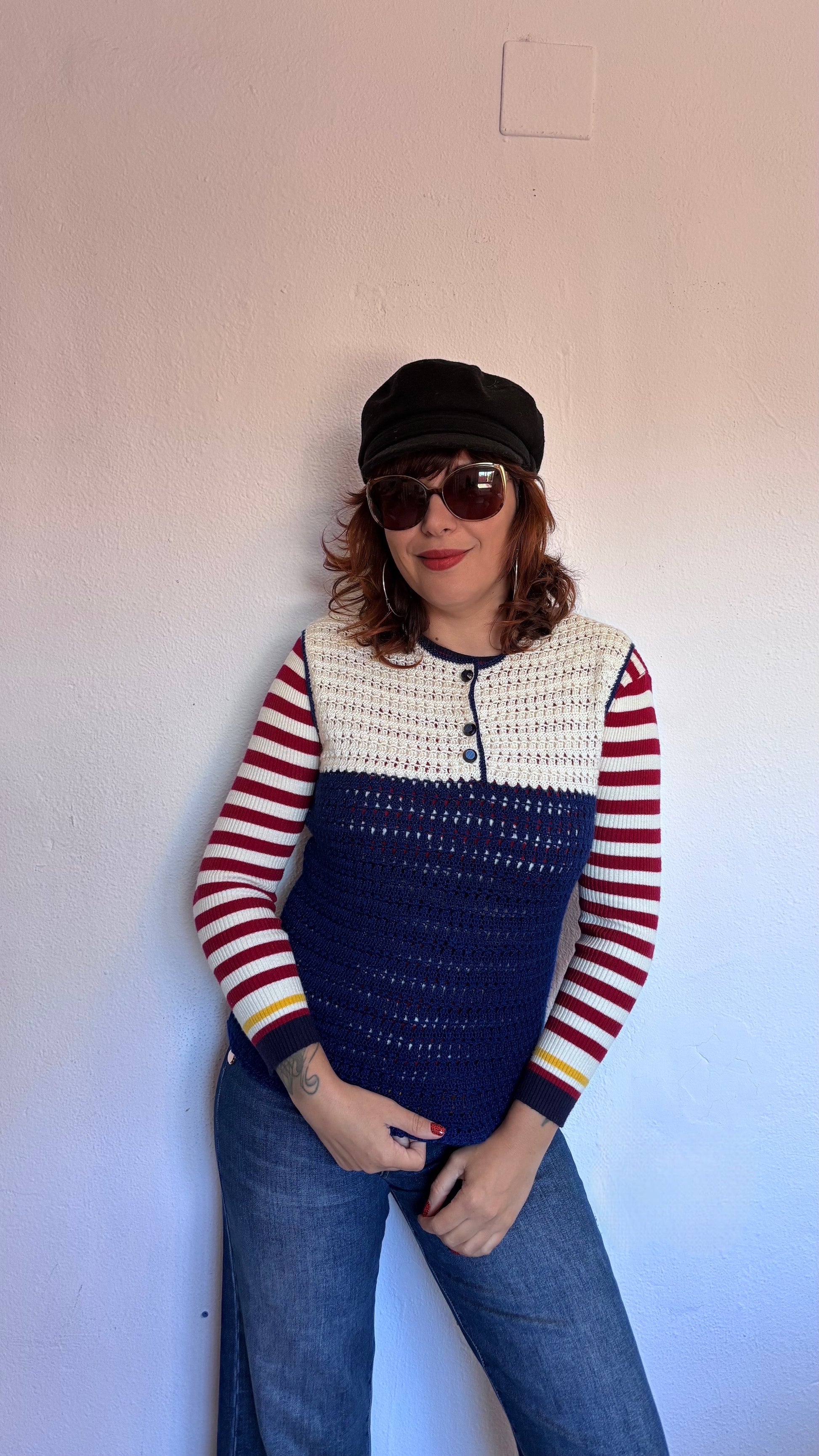 ·CARACTERISTICAS: precioso jersey de punto hecho a mano, perfecto para usar como chaleco o top de primavera. Los colores son clásicos y se pueden combinar de muchas maneras! No es elástico.