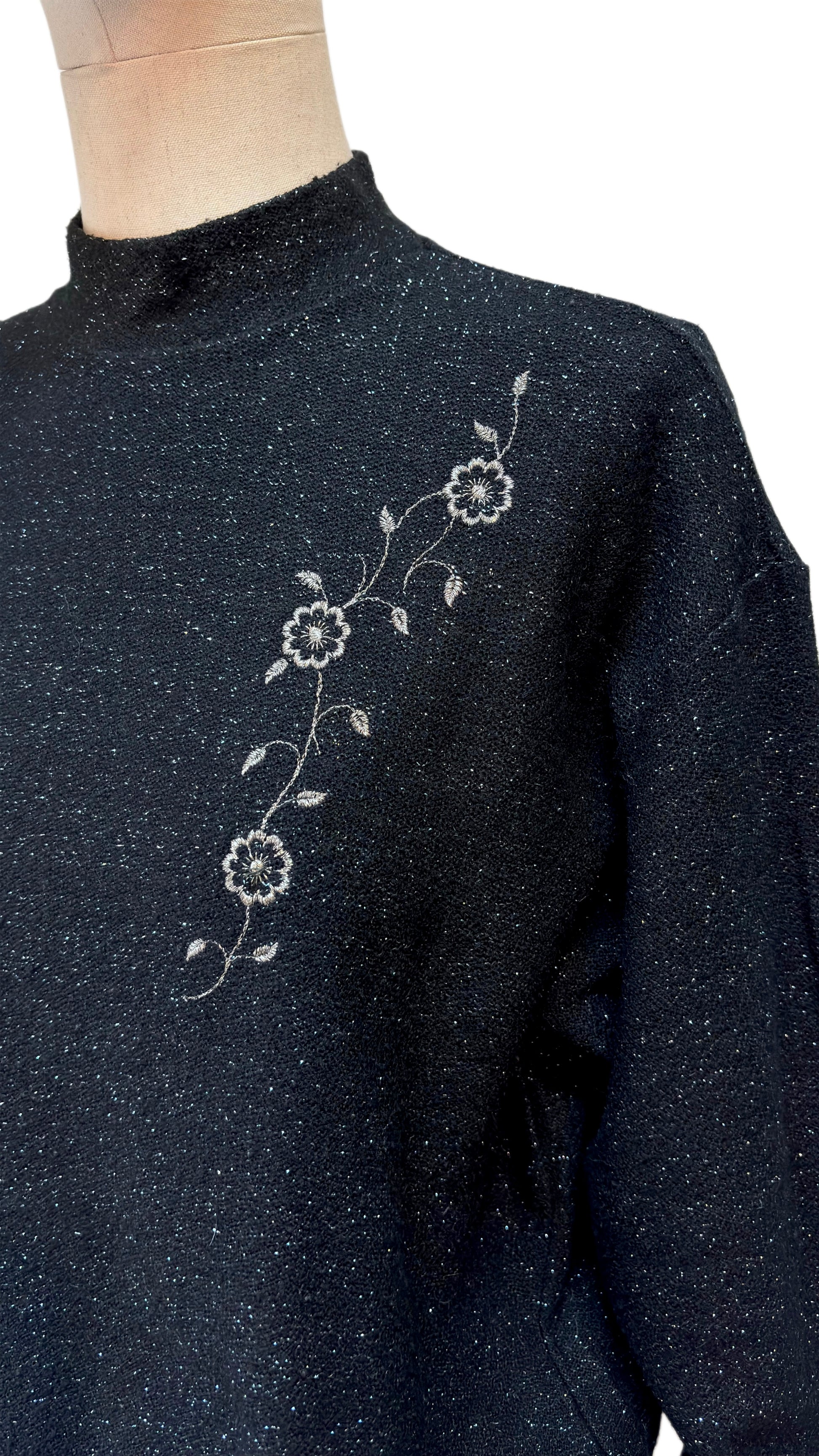 ·CARACTERISTICAS: negro con hijos de lurex plateado, bordado, anchito. Es un poco elástico y viste muy bien. Para llevarlo suelto o más ajustado, es una pieza que va con todo.