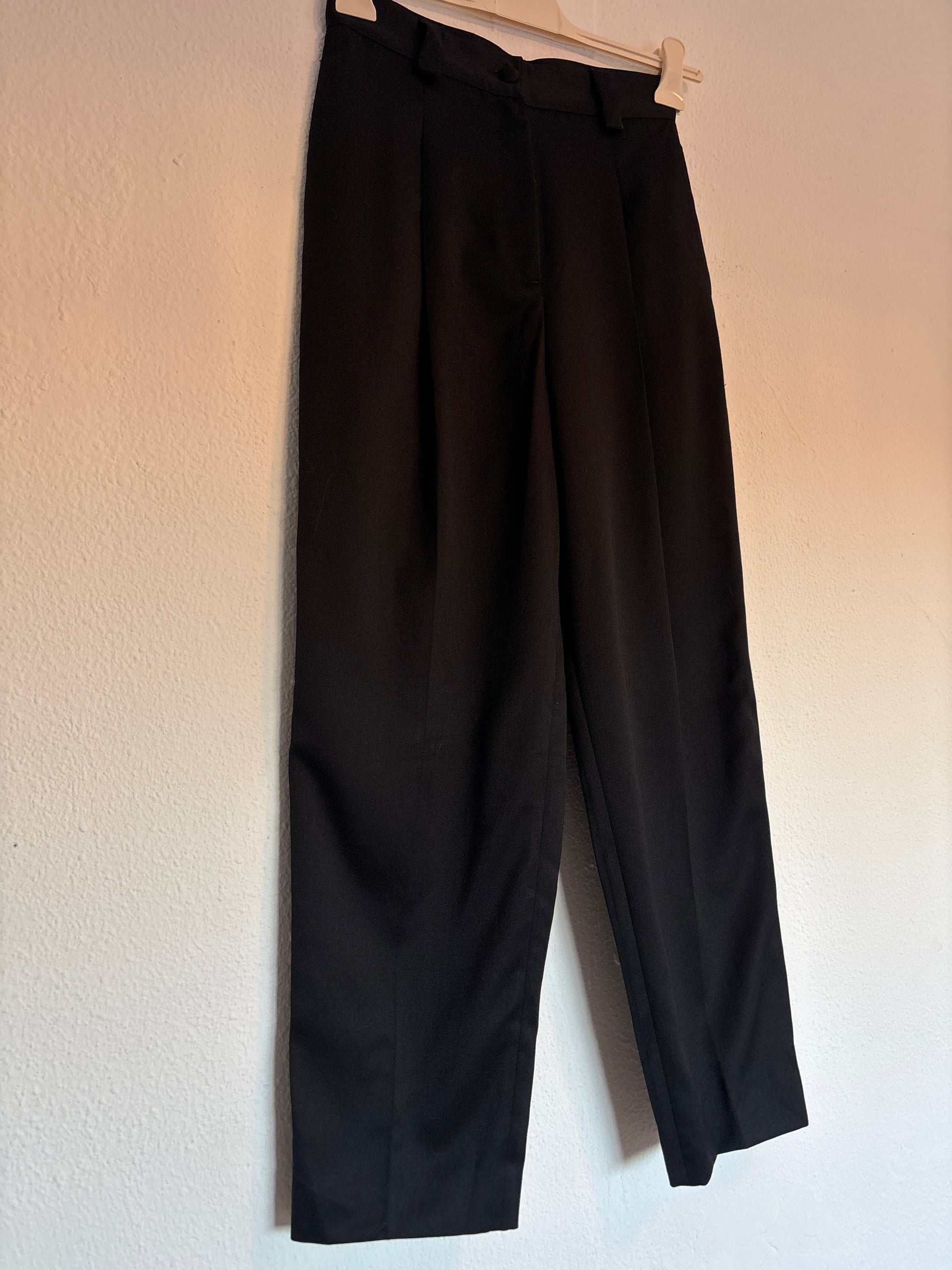 ·CARACTERISTICAS: precioso pantalón de pinzas negro de cintura alta, con un diseño ideal y de muchísima calidad. Es un básico que no falla nunca. Abriga y está impoluto. Tiene bolsillos laterales. Las fotos no le hacen justicia, es una verdadera joya.