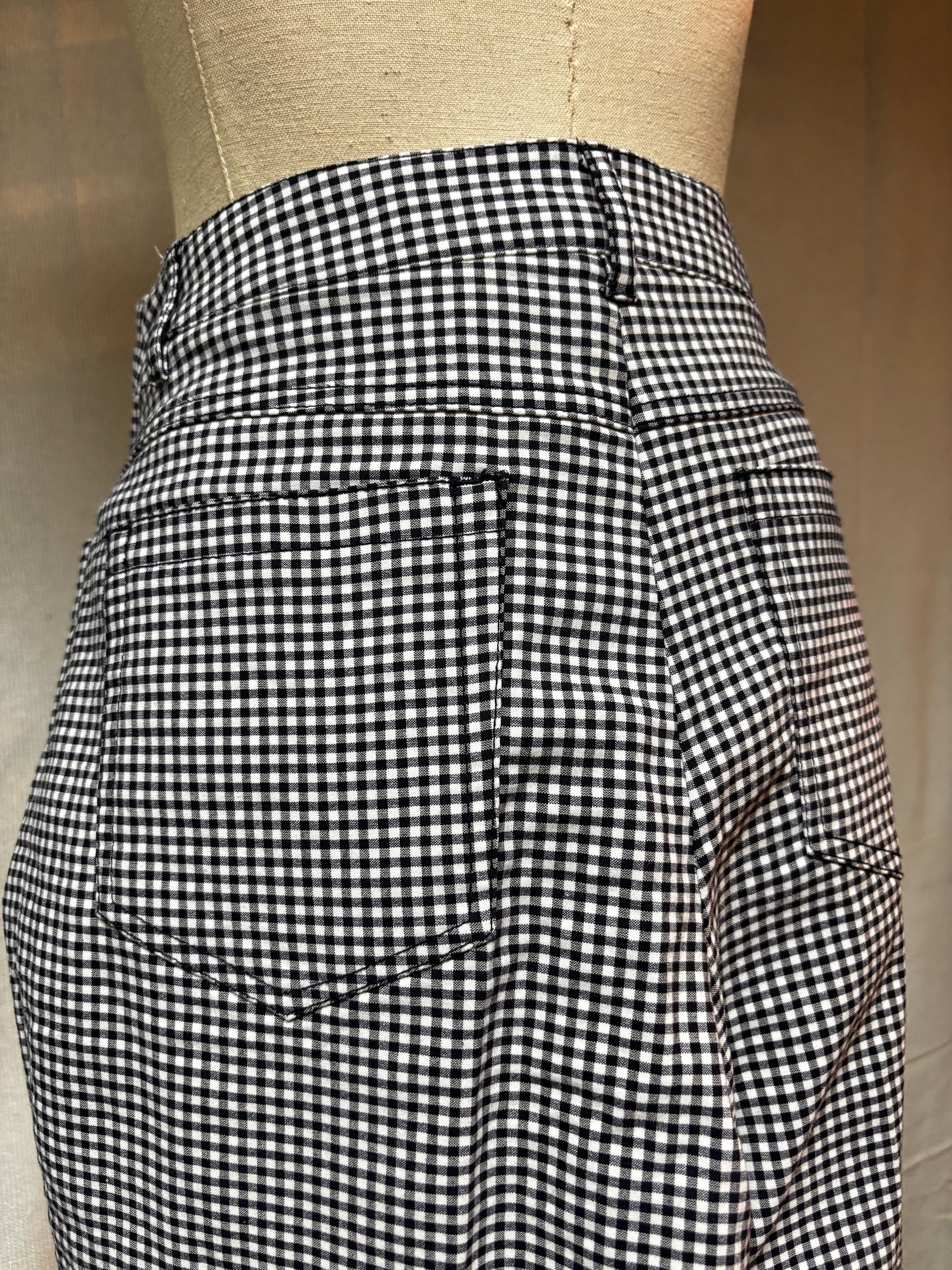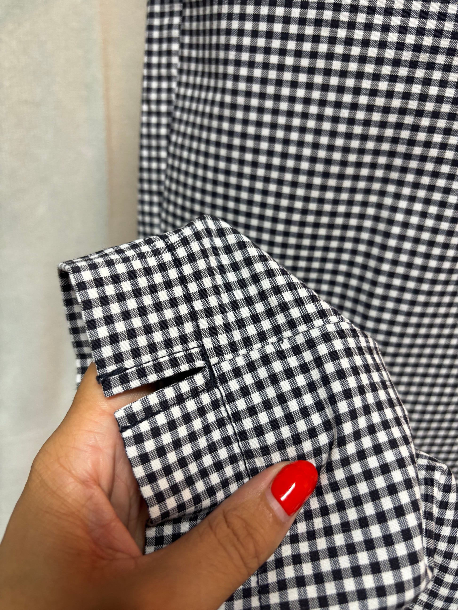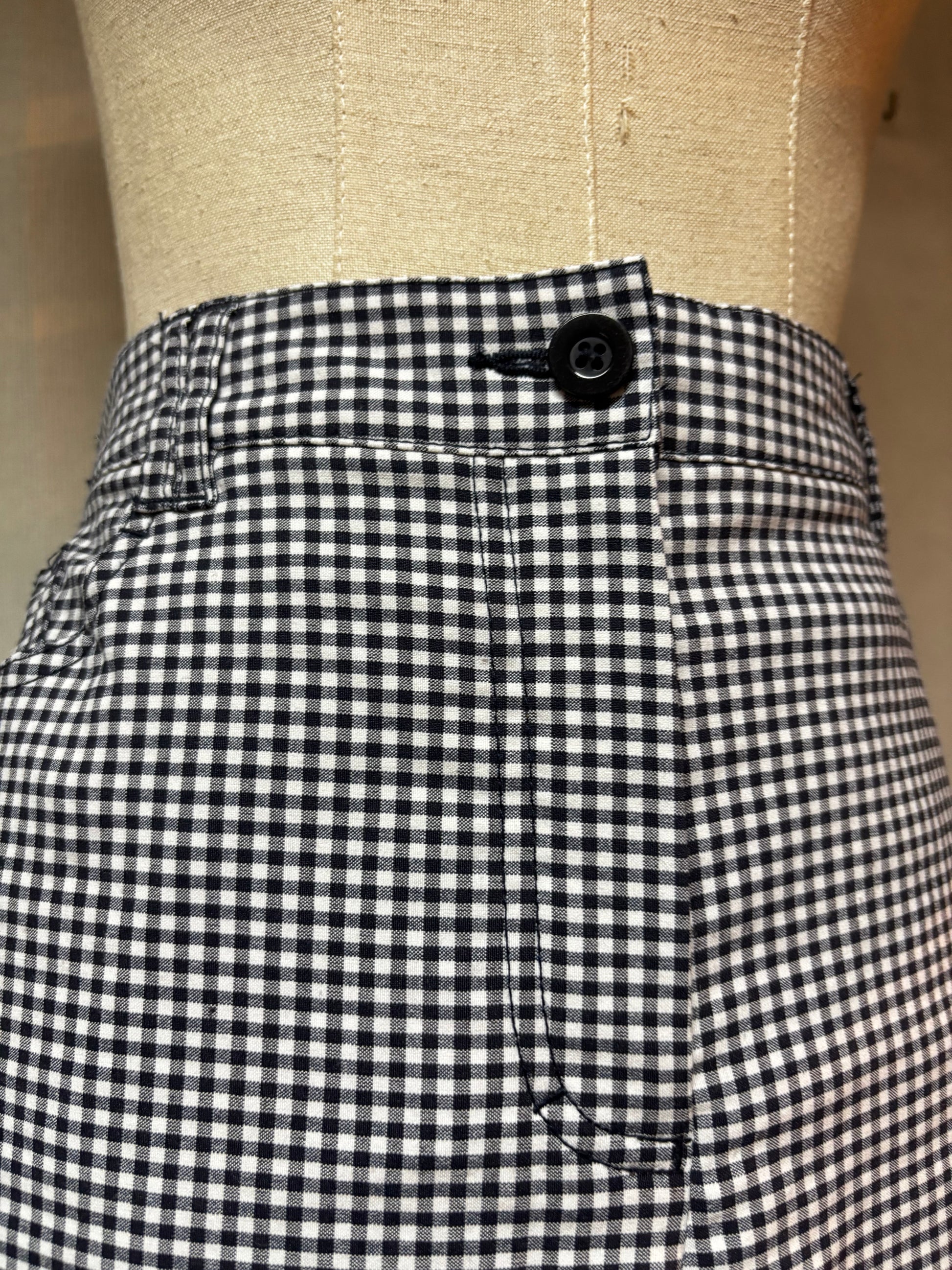 •CARACTERÍSTICAS: de cuadros, cintura alta, elástico. Tiene bolsillos frontales y traseros. Color azul marino oscuro. Viste ajustado y queda precioso. Un clásico que siempre da mucho juego