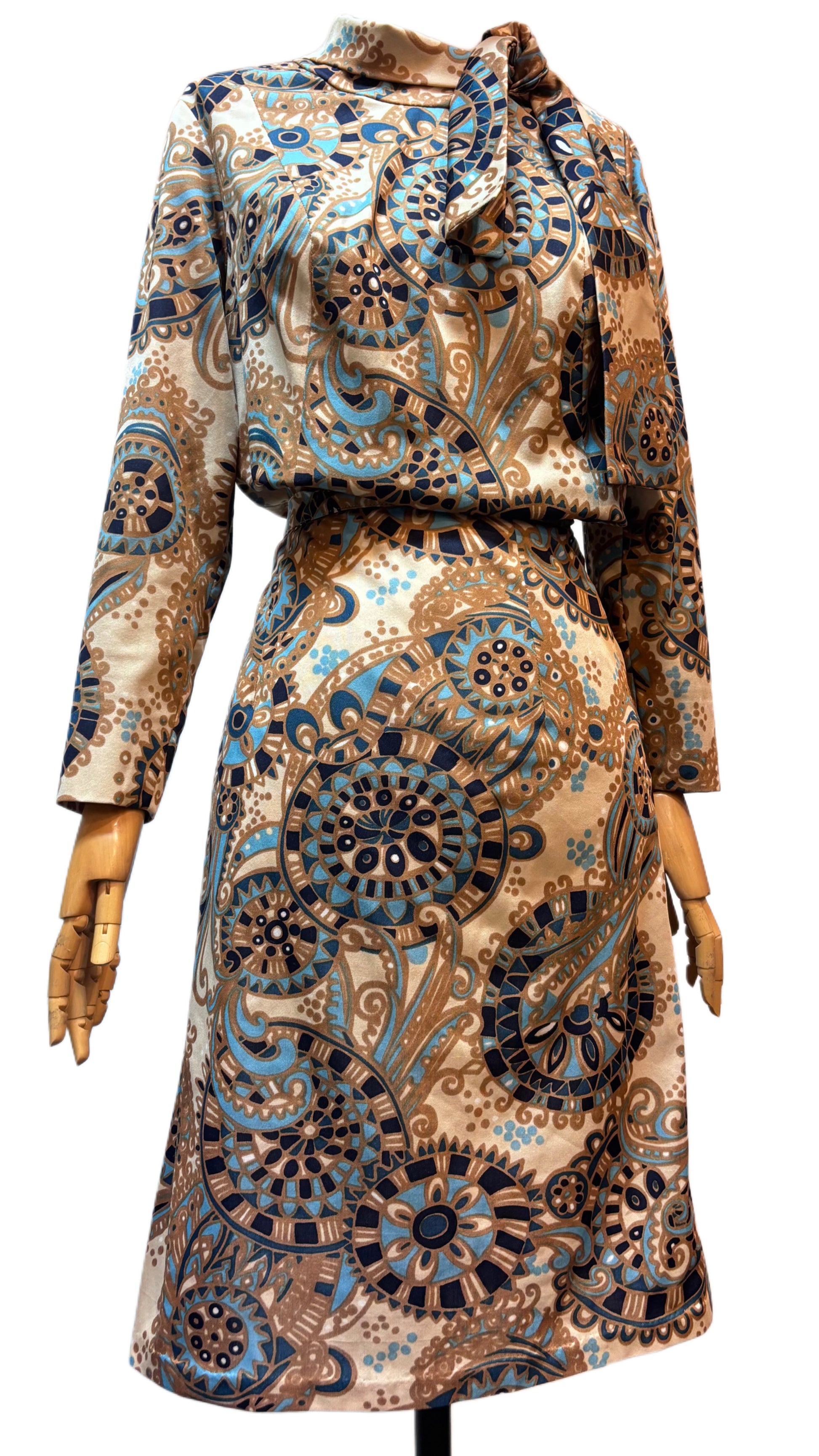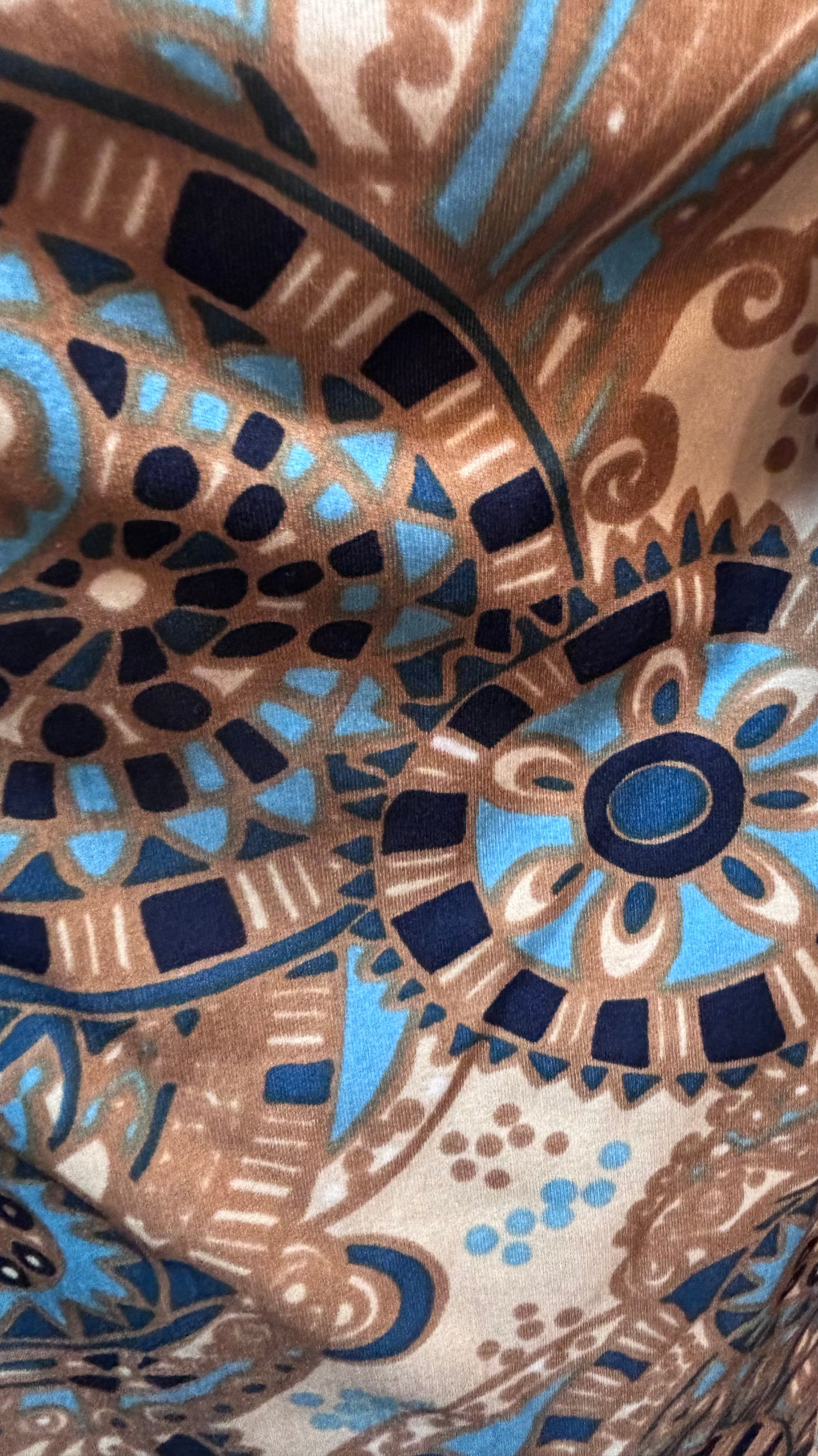 ·CARACTERISTICAS: traje totalmente hecho de confección a medida, auténtico y original de la época. El estampado es increíble y las piezas dan mucho juego, juntas o separadas. La túnica queda ideal con pantalones anchos, y la falda con algún jersey chulo es lo más. No está forrado. La falda es de cintura alta, evasé. Para las verdaderas amantes del vintage!