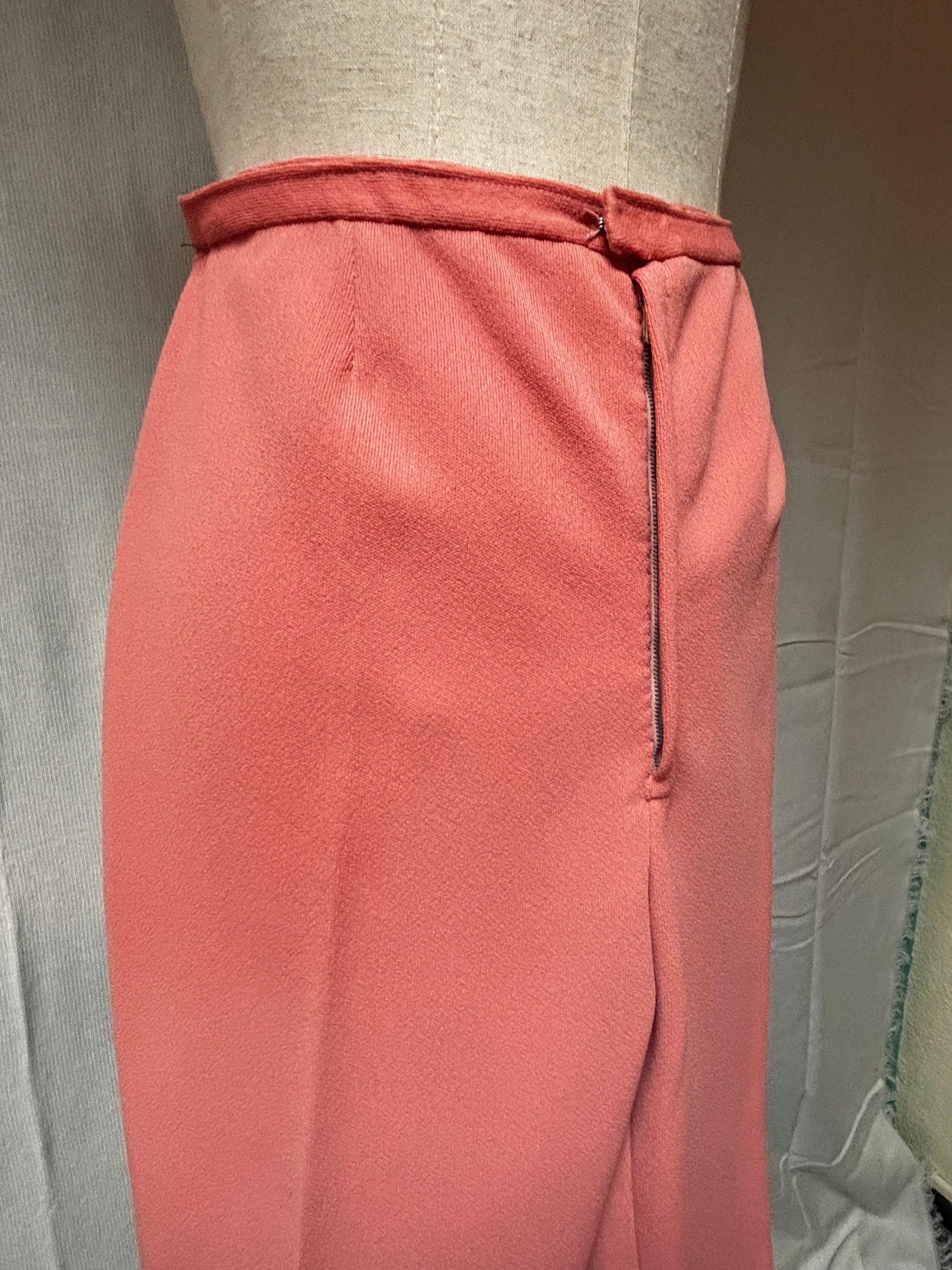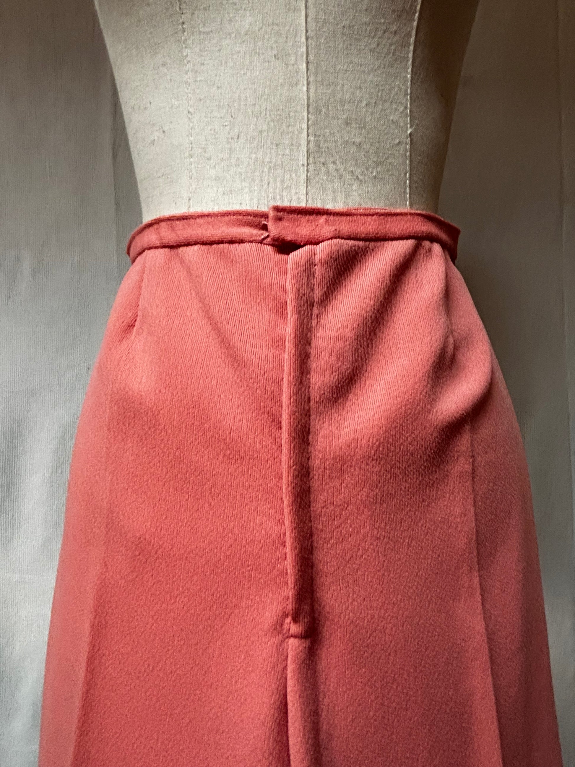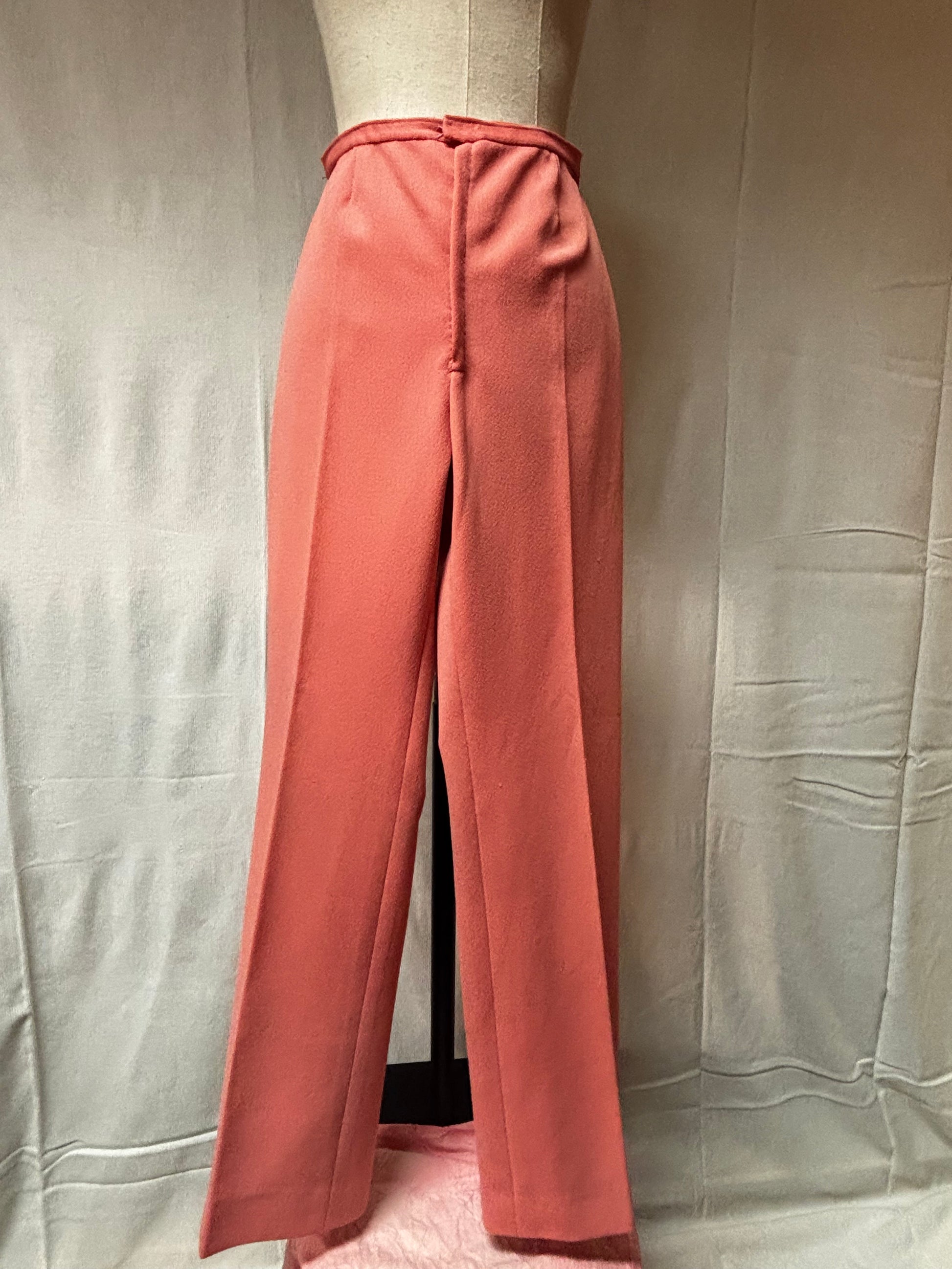 ·CARACTERISTICAS: color salmón, pantalón y túnica. Estilo Space Age, esta es una pieza rara y que no se encuentra fácilmente. Pantalón recto, cintura alta. La túnica tiene las costuras laterales chulísimas, y tiene un pequeño enganchón frontal, que se nota muy poco. Son elásticos y no están forrados. La cintura no estira. Un verdadero tesoro vintage. Está hecho a mano