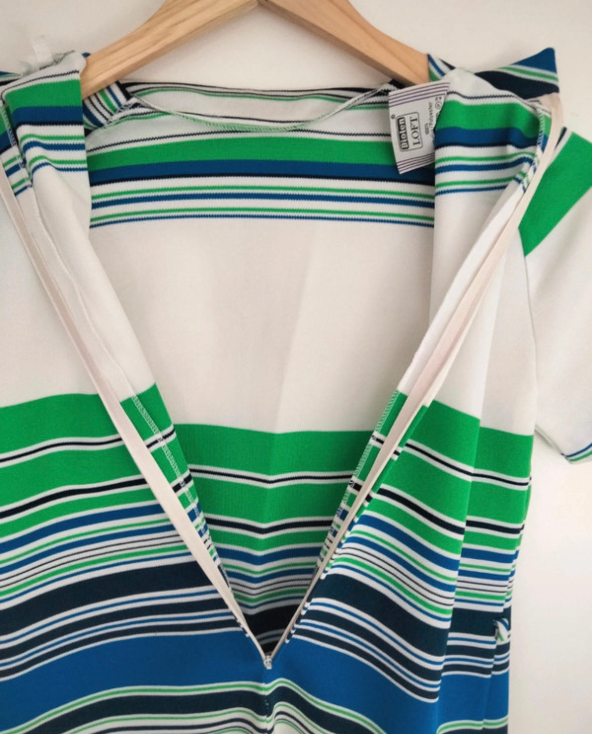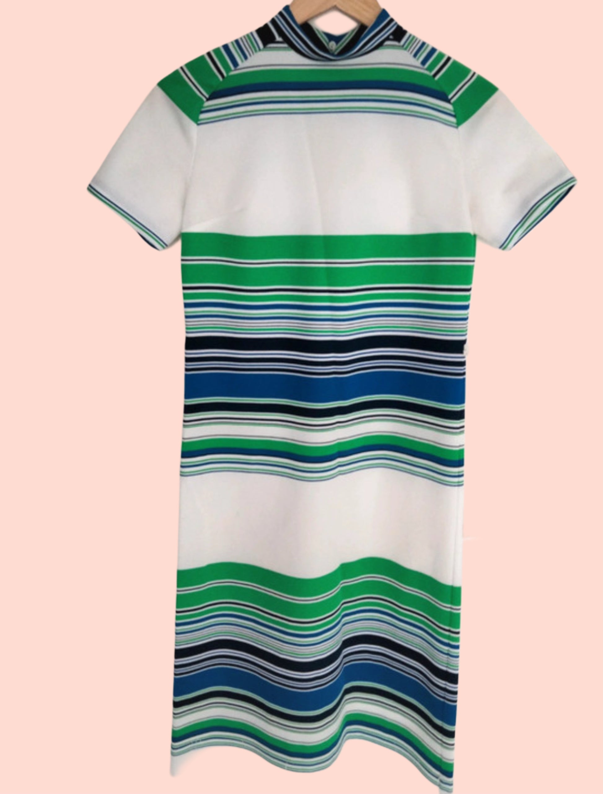 •CARACTERÍSTICAS: shift dress de rayas, elástico y sin forro. Un clásico de la época que va bien con todo. Viste ajustado y queda precioso.
