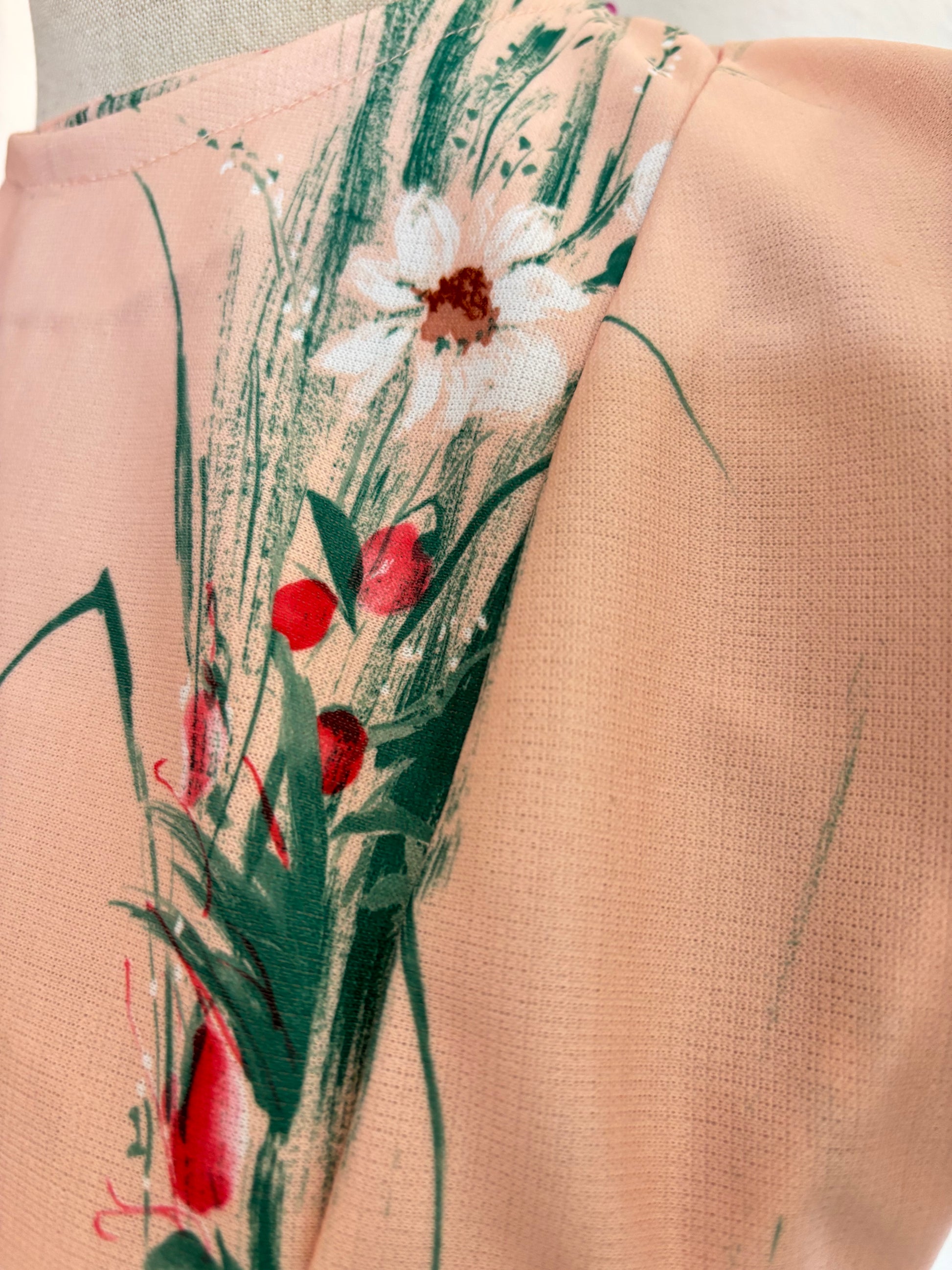 ·CARACTERISTICAS: Estampado precioso floral, muy veraniego. Viste ajustado y no está forrado. Falda evasé, cremallera trasera. Es un poco elástico. Tejido perfecto para entretiempo. Hecho a mano de modista.