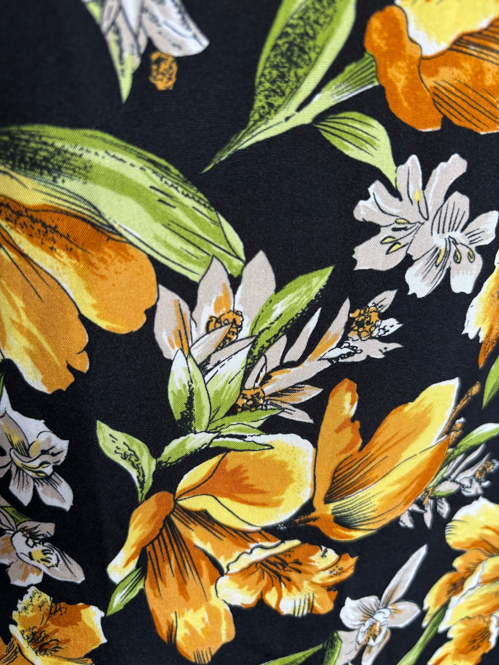 ·CARACTERISTICAS: estampado precioso floreado, mangas amplias. Evasé, sin forro. Hecho a medida, de modista. No es elástico. Fresco y atemporal.