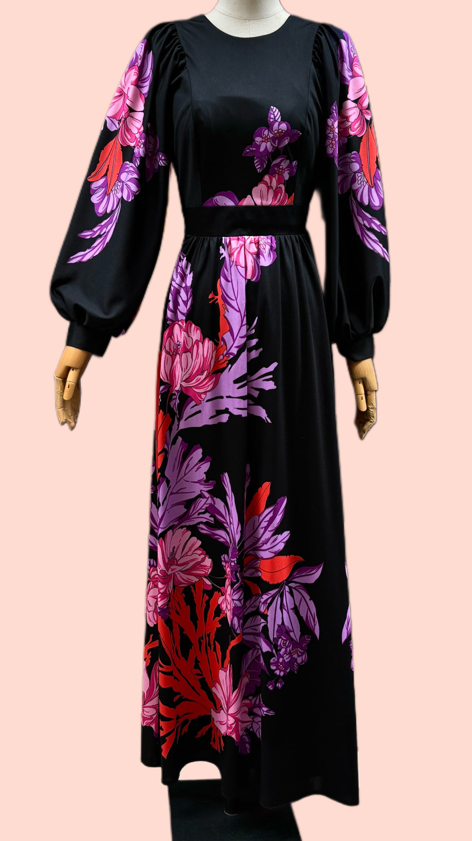 ·CARACTERISTICAS: maravilloso vestido original de Vera Mont con estampado y diseño espectacular. Es una pieza muy especial y queda preciosa puesta. Está forrado, las mangas son abullonadas y es un poco elástico (menos la cintura).
